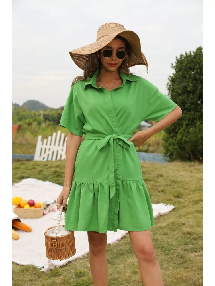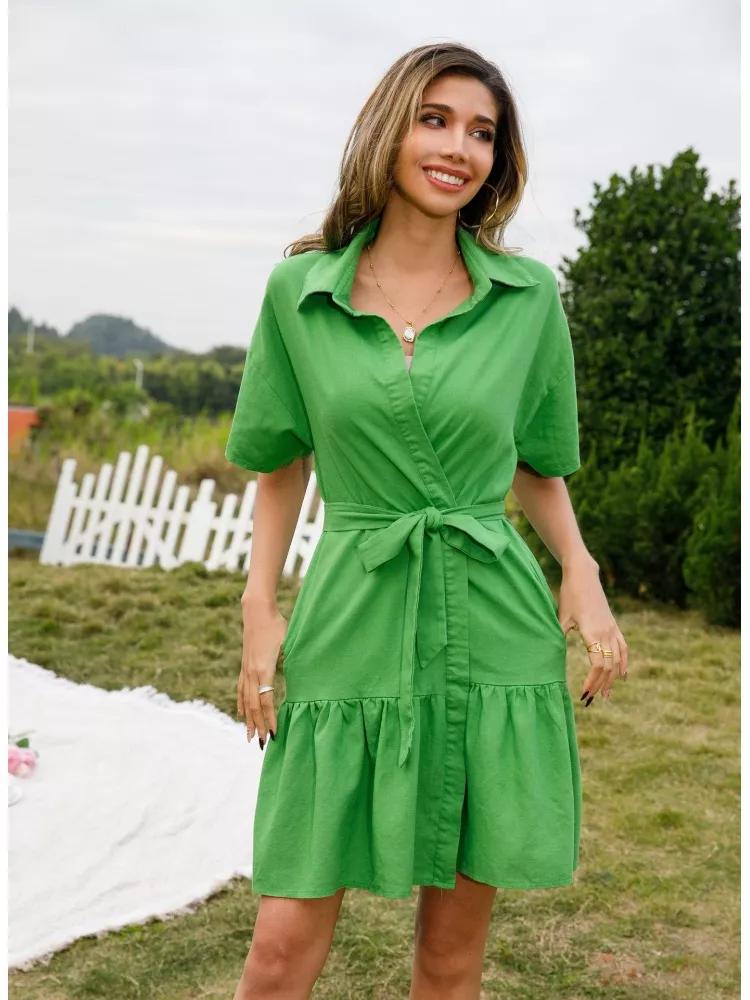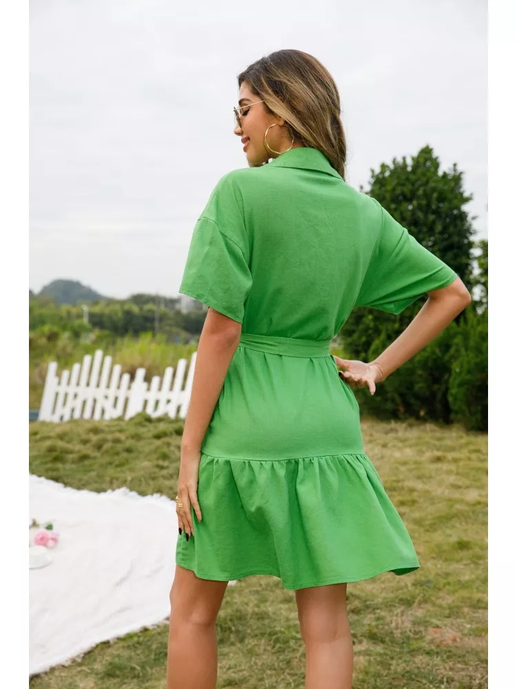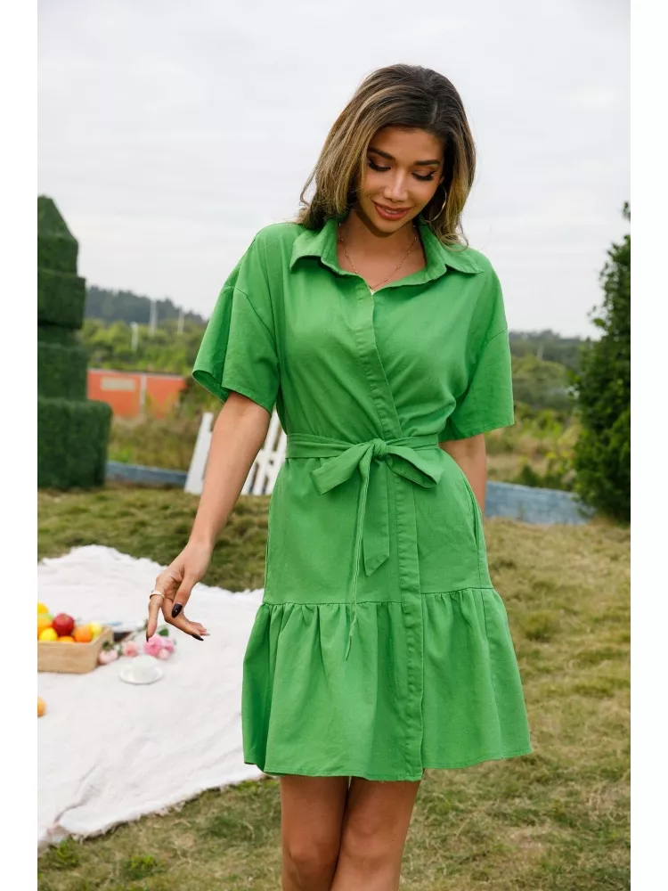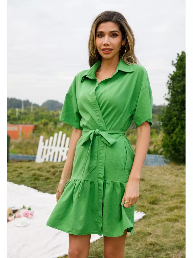 Abito corto donna scamiciato manica corta con cintura ginocchio verde D041