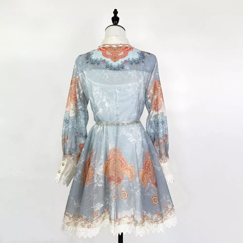 Il colletto classico dona un aspetto ordinato ed elegante, mentre la gonna leggermente svasata accompagna il movimento in modo fluido. Le maniche lunghe terminano con dettagli in pizzo coordinati, creando continuità stilistica con l’inserto frontale. Un capo pensato per chi cerca un abito femminile, raffinato e facilmente adattabile a diverse occasioni.