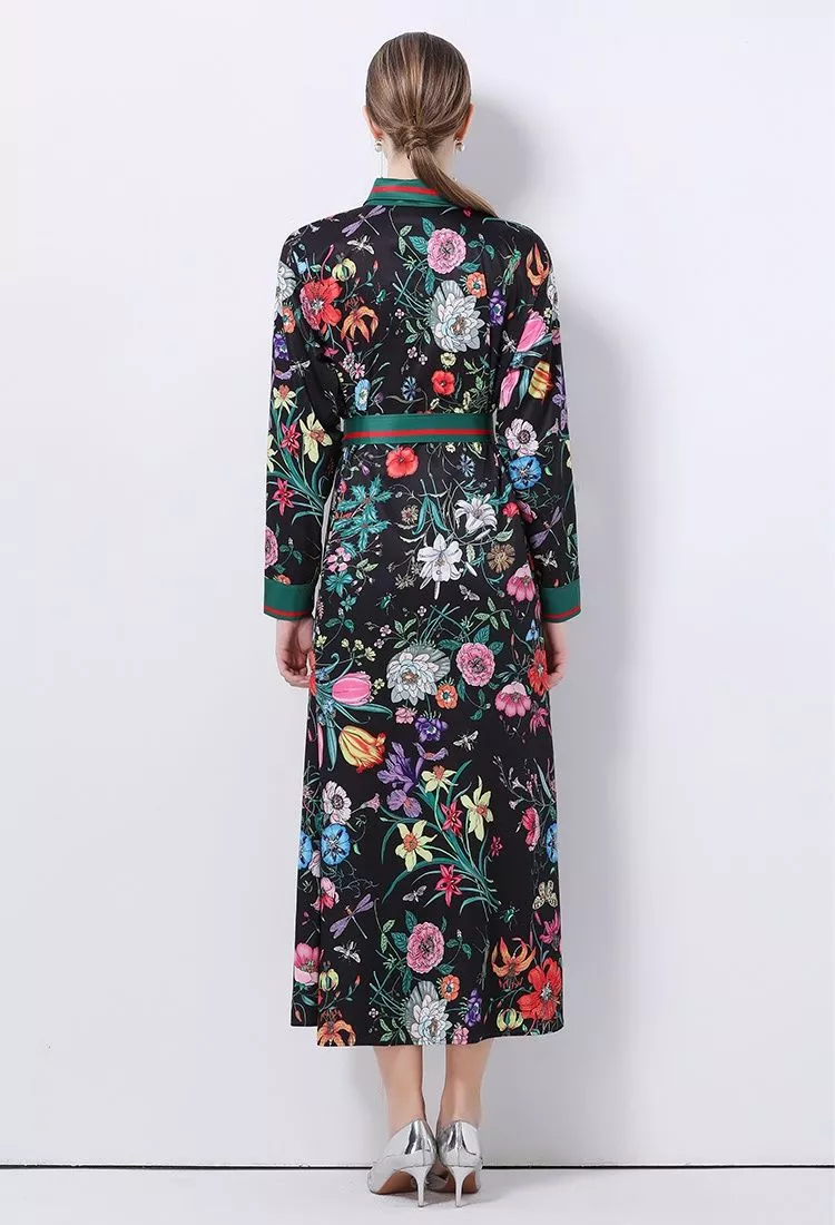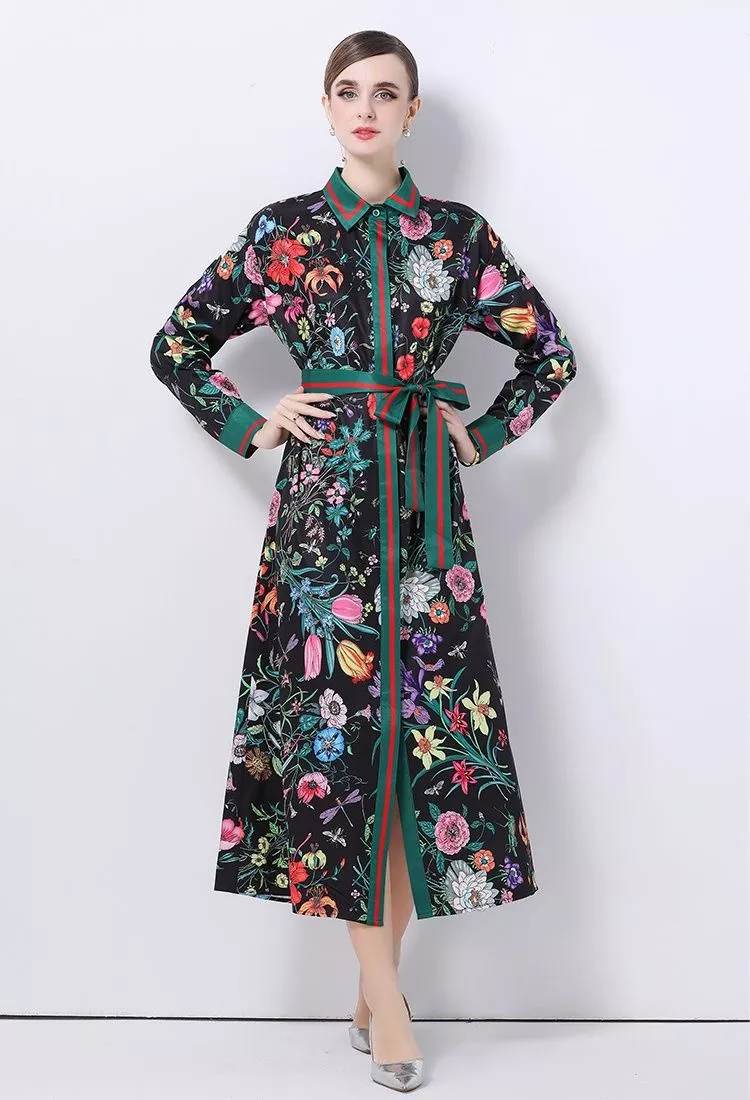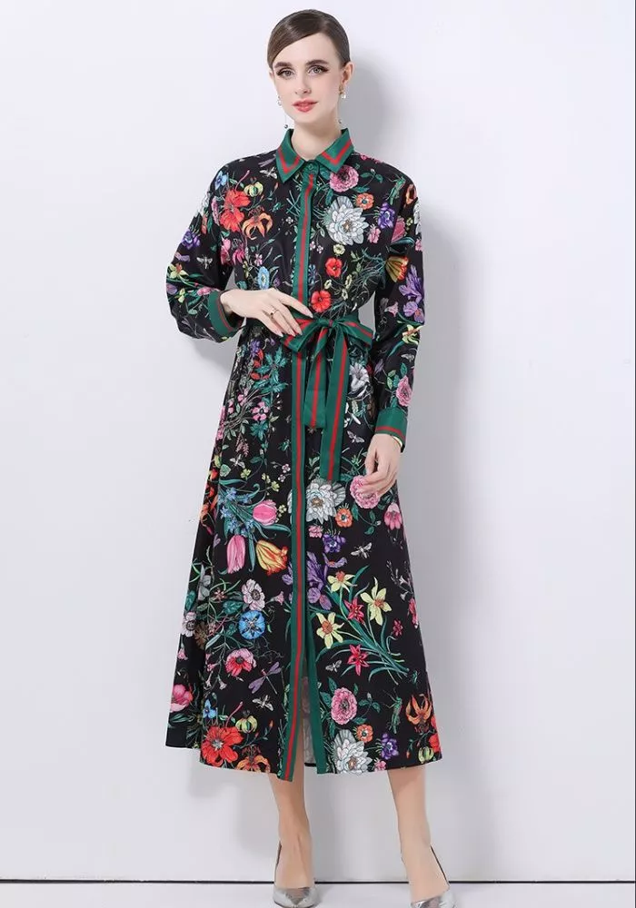 Abito lungo floreale dal design elegante, caratterizzato da linea scivolata e cintura in vita che valorizza la silhouette con stile. Il colletto a camicia e i profili a contrasto donano un tocco ricercato, mentre la stampa floreale all-over illumina ogni look con un’estetica moderna e femminile. Perfetto per cerimonie, eventi speciali e momenti in cui desideri un outfit raffinato che slancia la figura e cattura l’attenzione.