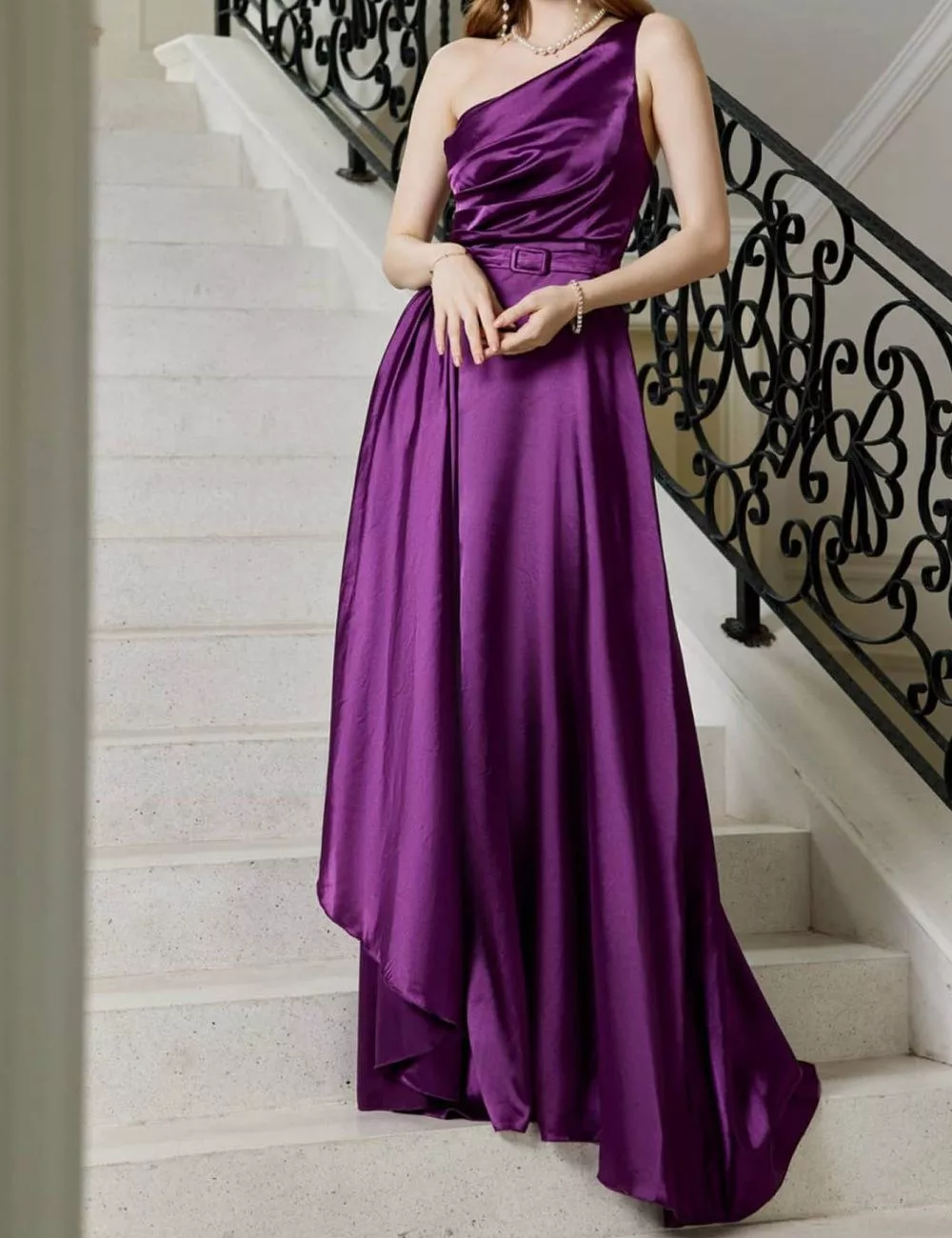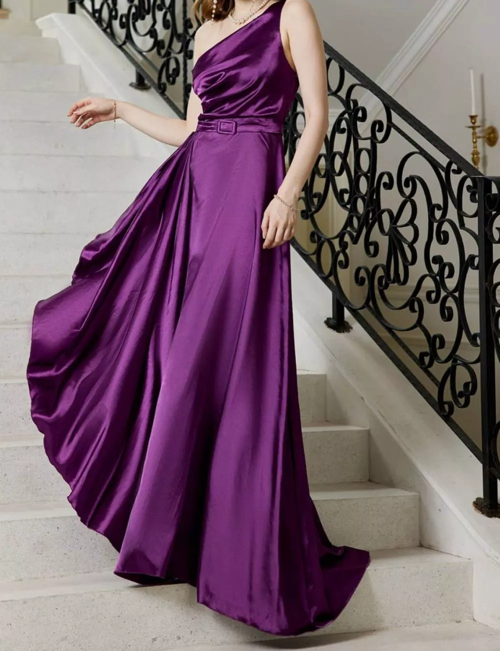 Abito Lungo Porpora Monospalla Con Cintura Elegante Da Sera CF43198
