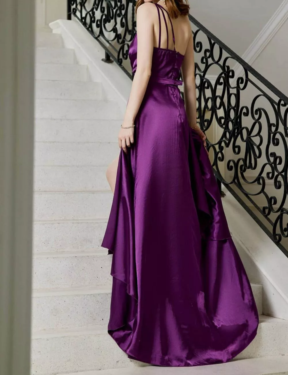 Lasciati conquistare da questo abito lungo monospalla, perfetto per cerimonie, eventi eleganti e serate speciali. Il taglio asimmetrico valorizza la silhouette e dona un tocco moderno e raffinato. Il punto vita è definito da una cintura tono su tono, mentre lo spacco laterale aggiunge sensualità e movimento al look. Il tessuto lucido esalta i colori con riflessi sofisticati, ideali per brillare con stile. Un modello che unisce classe e femminilità, da abbinare a sandali con tacco e clutch gioiello per un risultato impeccabile.