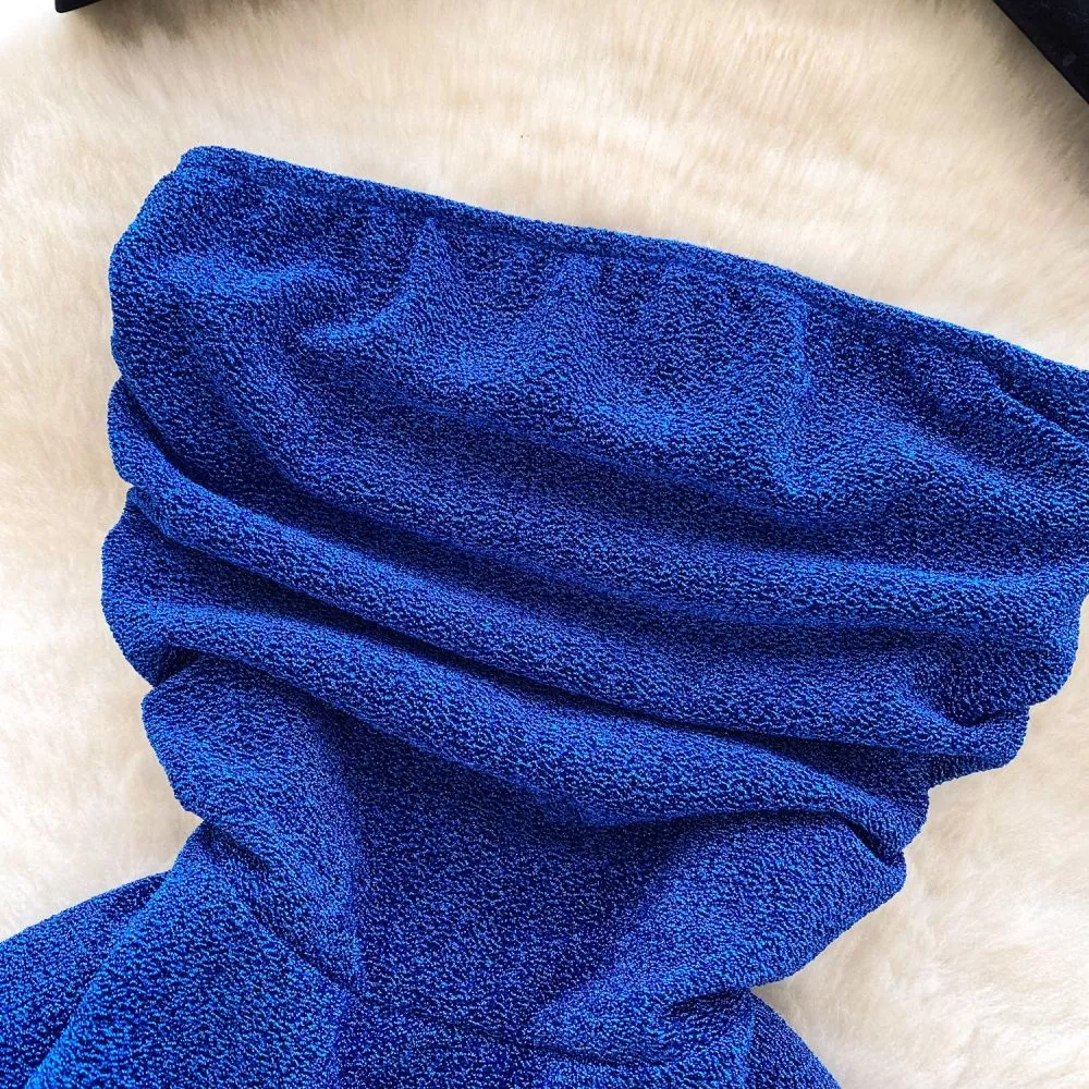 Abito Mini A Fascia Donna Blu In Maglia Elasticizzata Linea Svasata CF64925