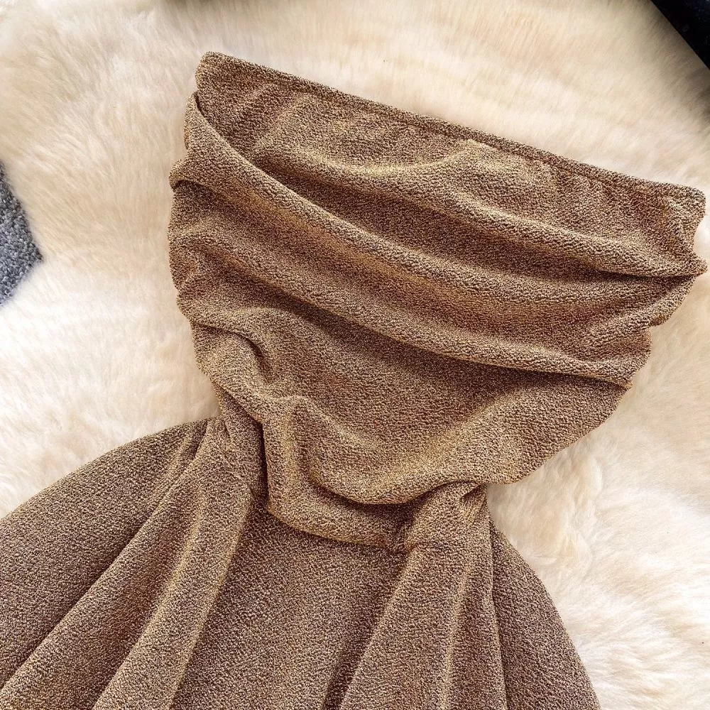 Abito Mini A Fascia Donna Oro In Maglia Elasticizzata Linea Svasata CF64925