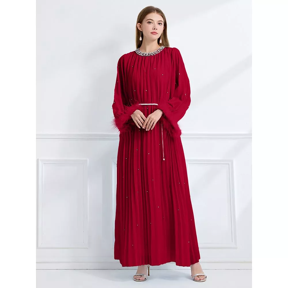 Questo abito lungo rosso è la scelta perfetta per eventi e cerimonie eleganti.