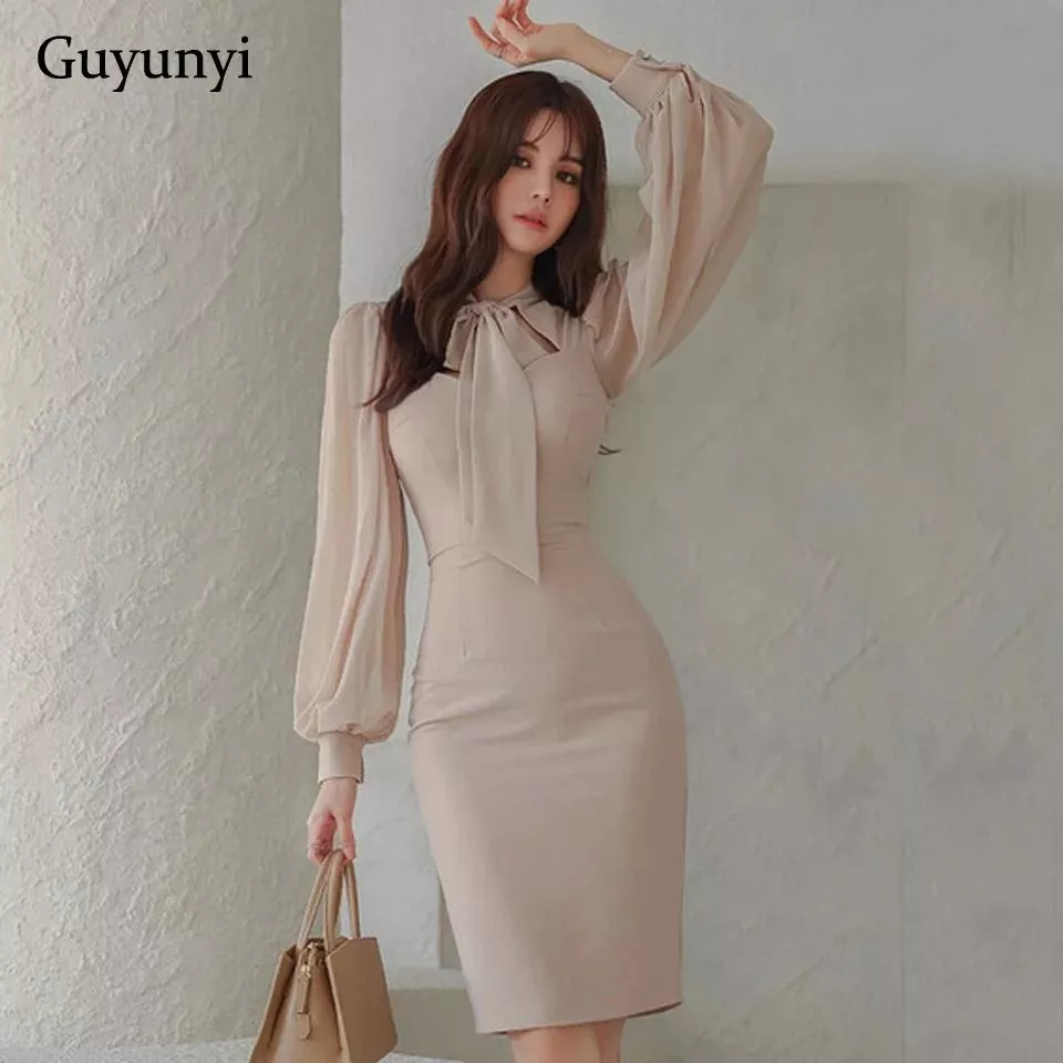 Abito Tubino Midi Aderente Elegante Donna Con Fiocco Beige X7M2Q9