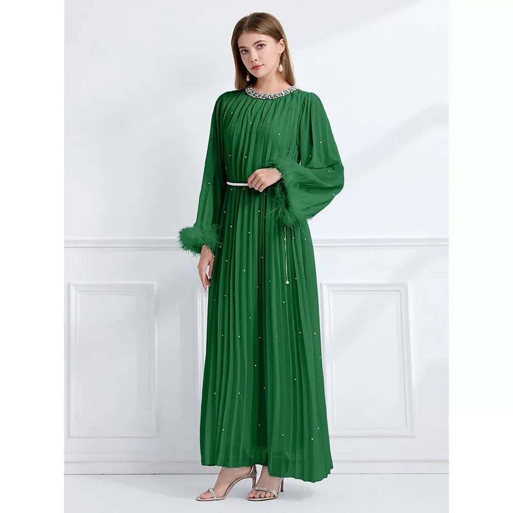 Abito lungo verde elegante e raffinato, perfetto per cerimonie, eventi o serate di gala.