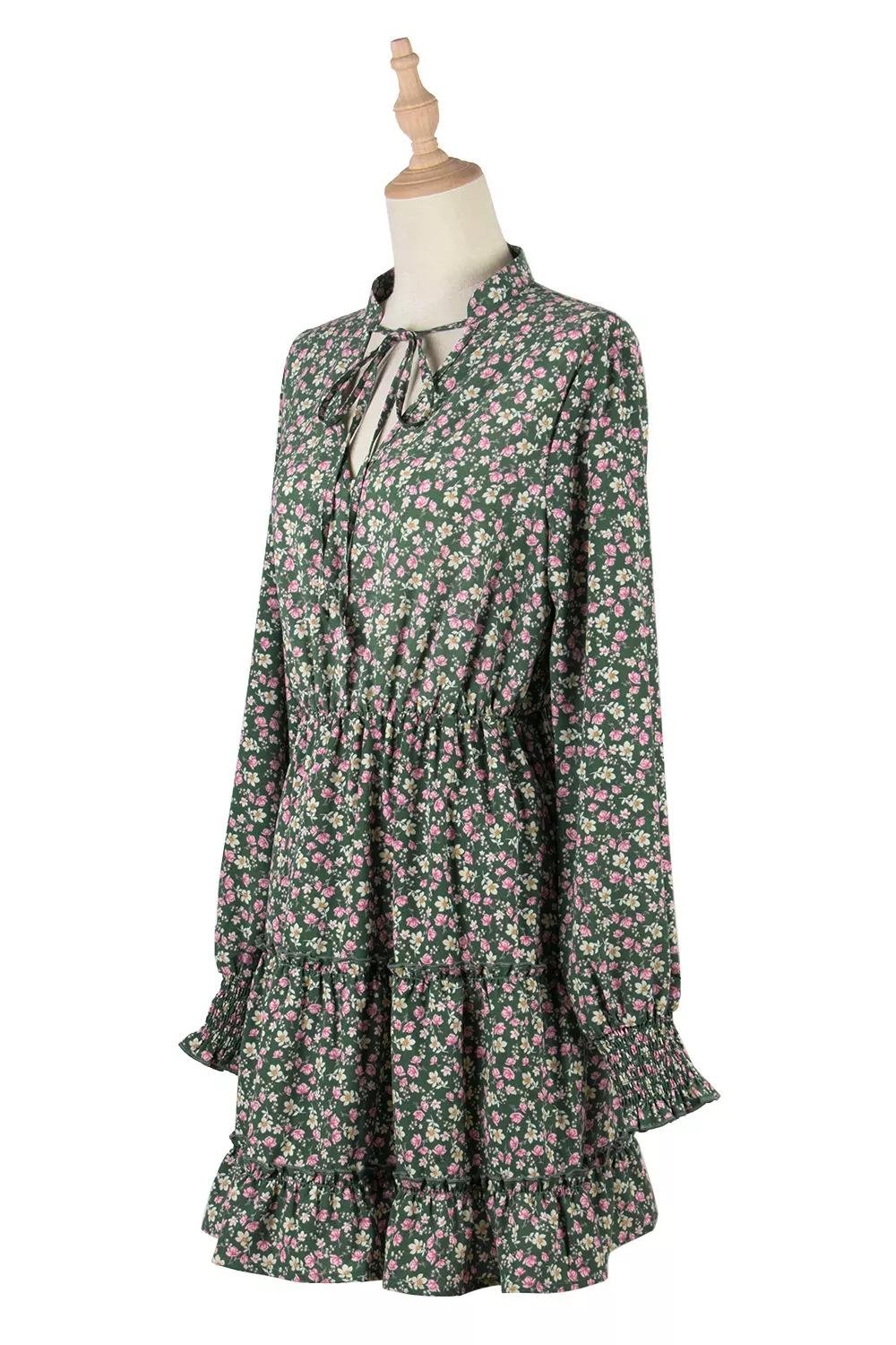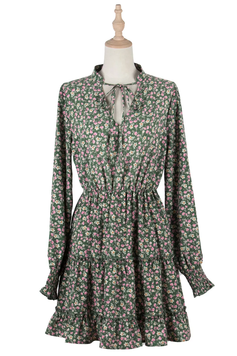 Abito Vestito Donna Corto Morbido Verde Rosa Fiori Colorato Manica Lunga 38320