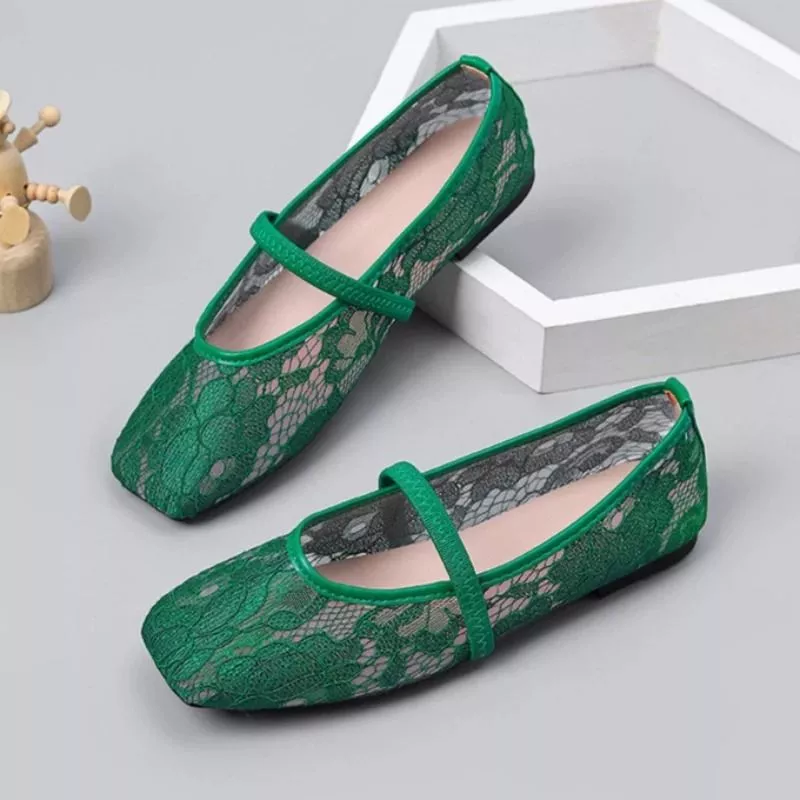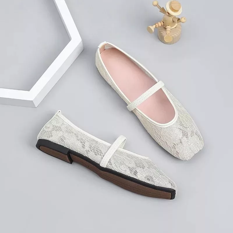 Ballerine dal design femminile e delicato, realizzate con tomaia in pizzo che dona leggerezza visiva e un effetto raffinato. La struttura Mary Jane con cinturino sul collo del piede migliora la stabilità rispetto alle ballerine classiche, mantenendo una linea elegante e pulita.