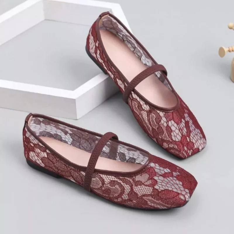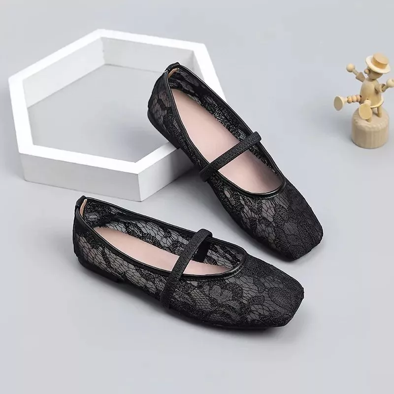 Ballerine dal design femminile e delicato, realizzate con tomaia in pizzo che dona leggerezza visiva e un effetto raffinato. La struttura Mary Jane con cinturino sul collo del piede migliora la stabilità rispetto alle ballerine classiche, mantenendo una linea elegante e pulita.