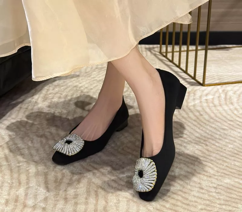 Ballerine Donna Nere Eleganti Basse Fibbia Gioiello Comode Chic CF69803