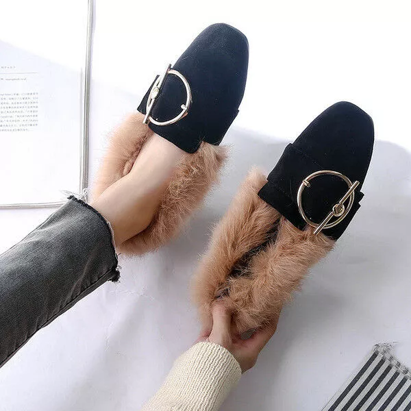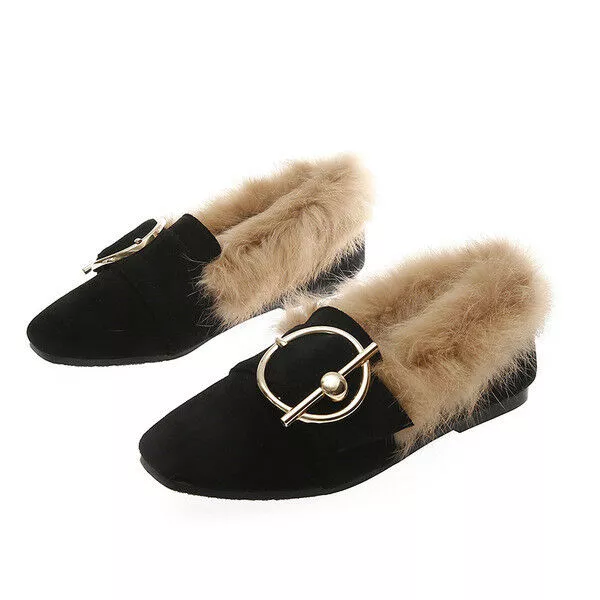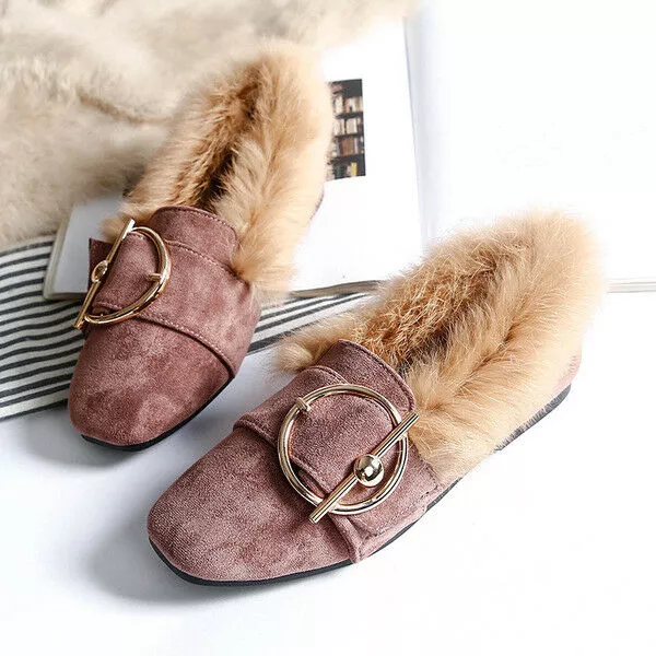 Ballerine mocassini scarpe eleganti pelliccia calde rosa pelle sintetica 1556