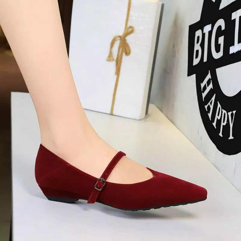 Ballerine Punta Affusolata Cinturino Eleganti Rosso Vino Chic Donna CF58590