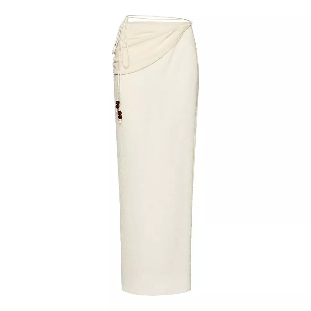La gonna pareo lunga e fluida completa il set, trasformando il bikini in un vero outfit da spiaggia. Perfetta da indossare sopra il costume, aggiunge copertura e stile, rendendo il look adatto anche a contesti fuori dall'acqua come passeggiate sul lungomare, beach club o momenti di relax.
