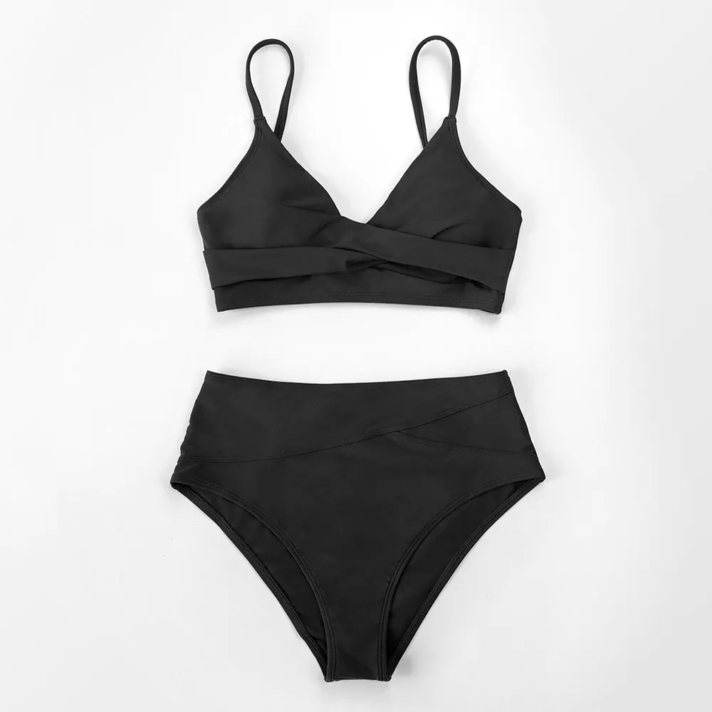 Bikini donna due pezzi fascia moda mare slip culottes marrone tinta unita J149