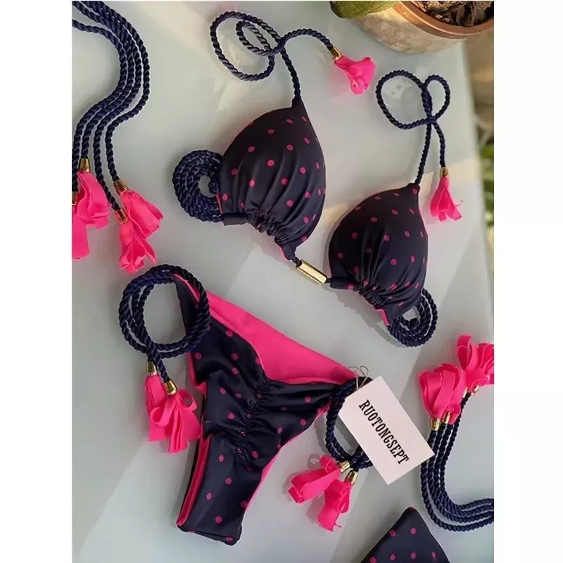 Bikini Donna Due Pezzi Triangolo Rosso Bicolore Pois Mini Tanga Sgambato 211823