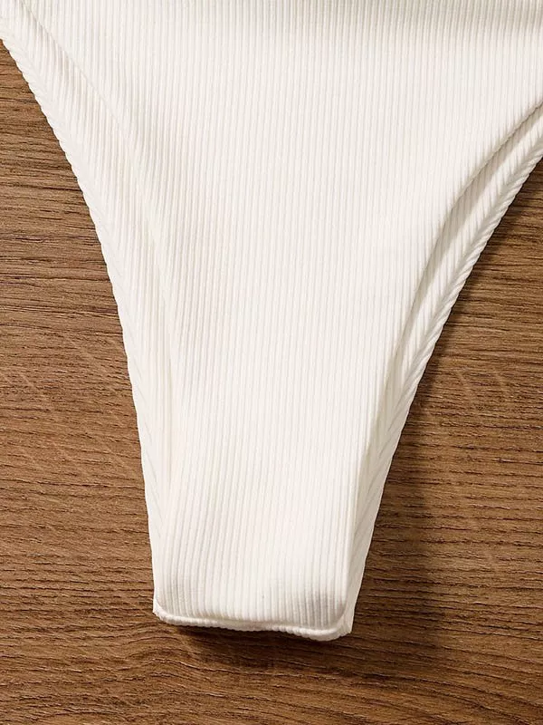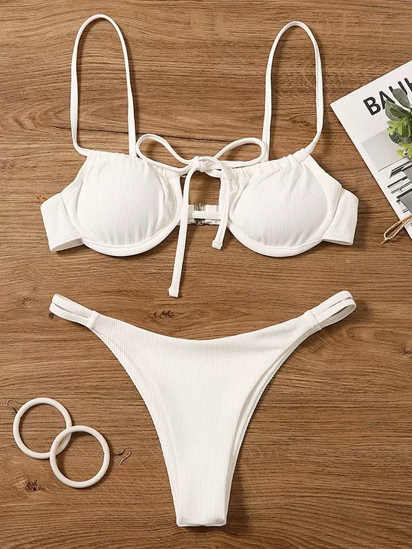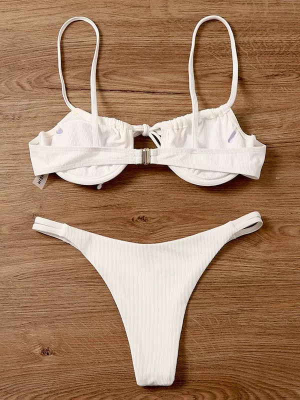Bikini donna elegante due pezzi fascia slip sgambato coppe bianco coste 316199