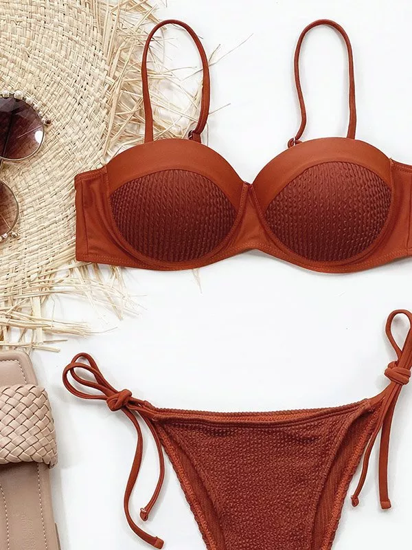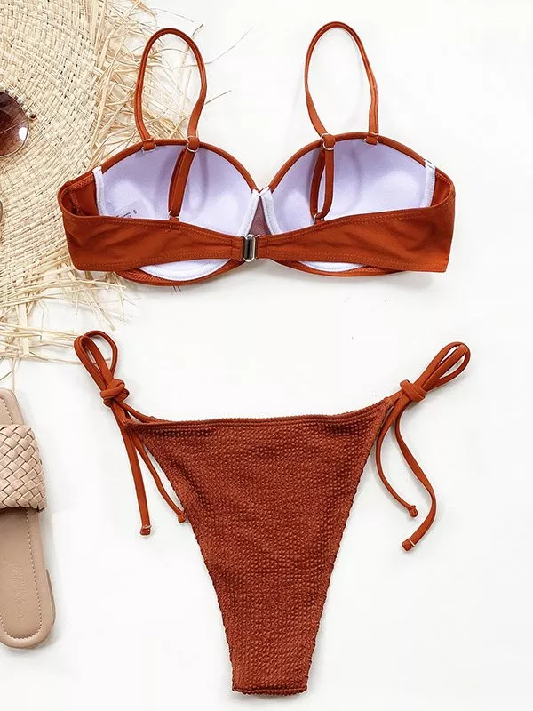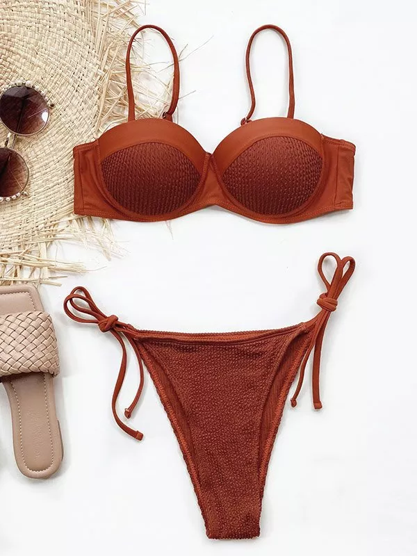 Bikini donna elegante due pezzi fascia slip sgambato coppe marrone 316197