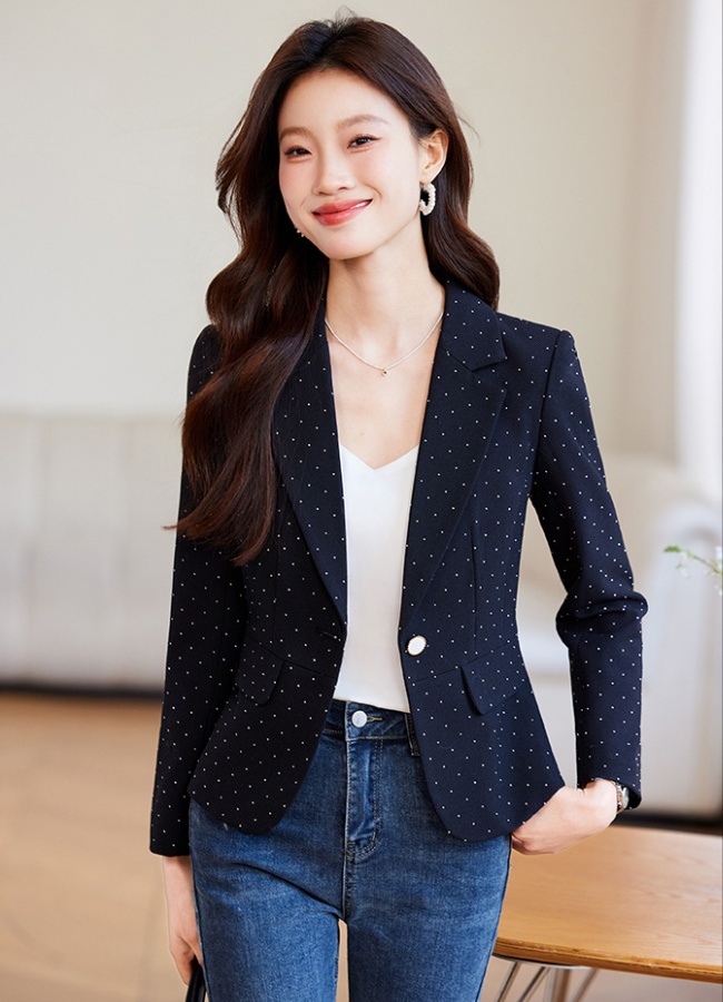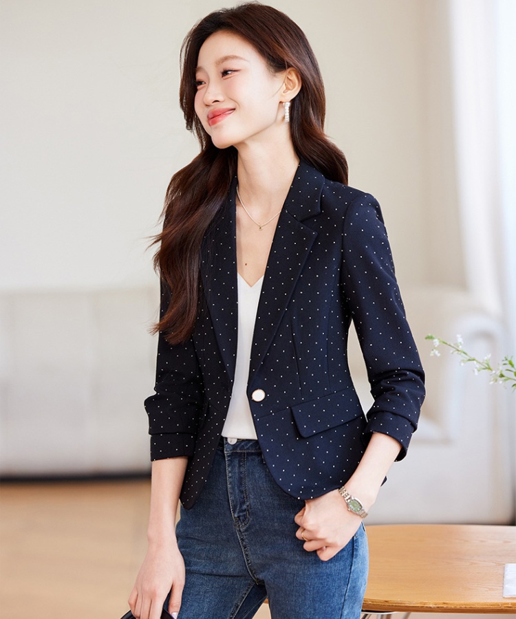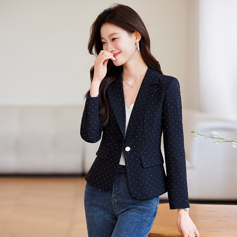 Blazer Donna Elegante Blu Slim Fit Raso Corto da Ufficio Giacca Tailleur 35014