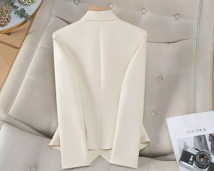 Blazer doppiopetto dal taglio femminile strutturato, progettato per valorizzare la silhouette con linee pulite ed eleganti. I bottoni decorativi e il design con revers classico lo rendono perfetto per completare outfit da ufficio, cerimonia ed eventi. Un capo versatile che dona carattere e raffinatezza a qualsiasi look.