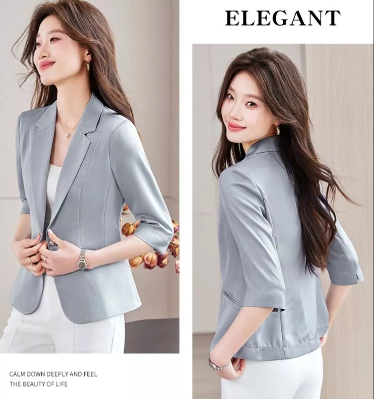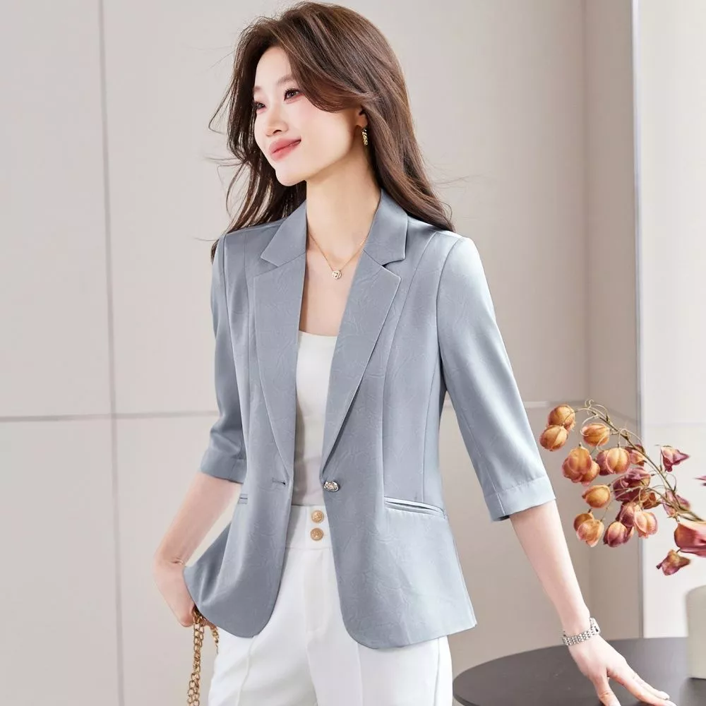 Blazer Donna Elegante Grigio Azzurro Manica Tre Quarti Chic CF67941
