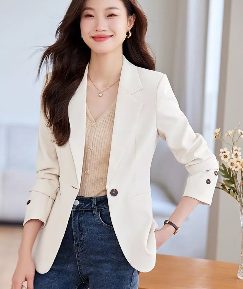 Blazer Donna Elegante Monopetto Slim Fit Giacca Ufficio Beige CF66858