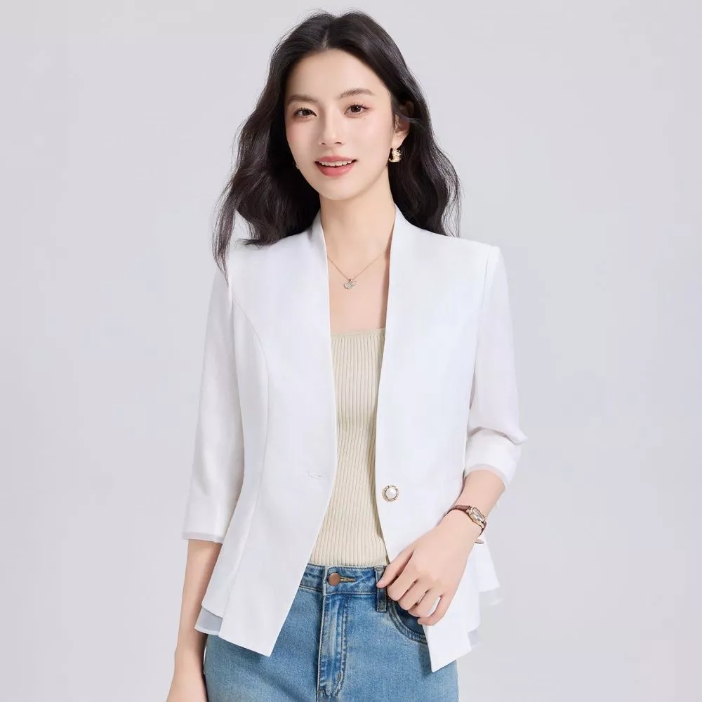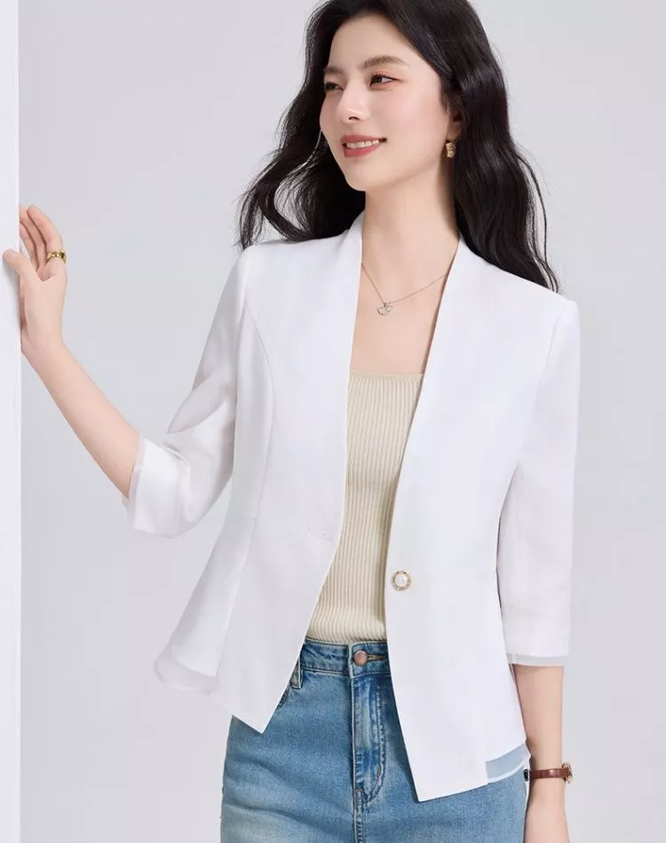 Blazer Elegante Donna Giacca Ufficio Manica Tre Quarti Bianco Leggera CF68533