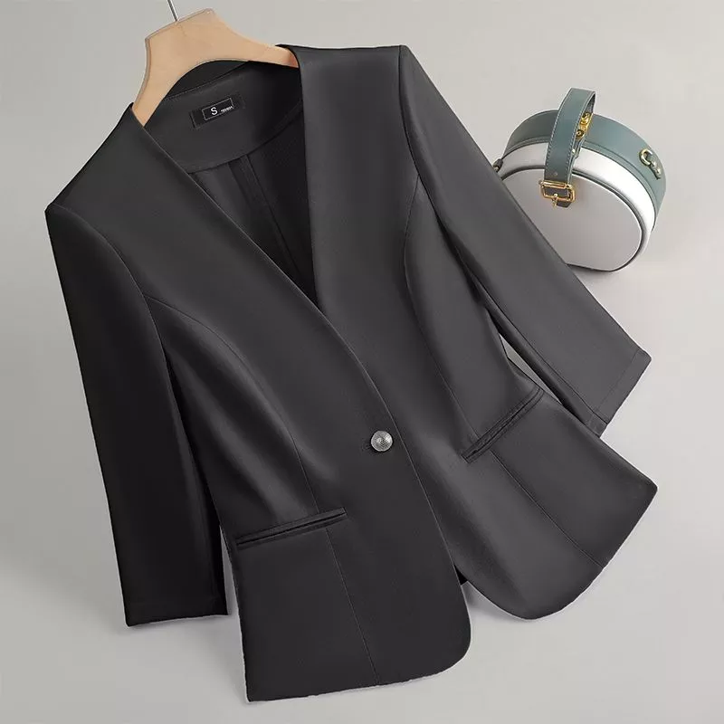 Elegante, pulita e raffinata: questa giacca blazer con chiusura a bottone singolo è perfetta per un look da ufficio o per eventi chic. Il design senza colletto dona un’estetica moderna e minimalista, mentre le maniche tre quarti la rendono ideale per le stagioni intermedie. Le tasche frontali la rendono pratica e stilosa allo stesso tempo. Da abbinare a pantaloni sartoriali o gonne midi per un look impeccabile e femminile.
