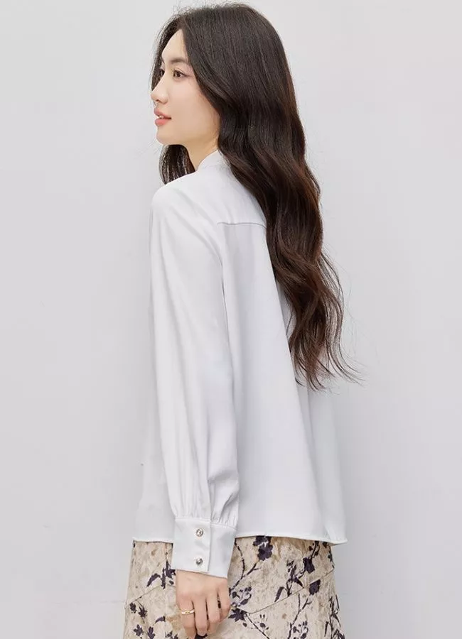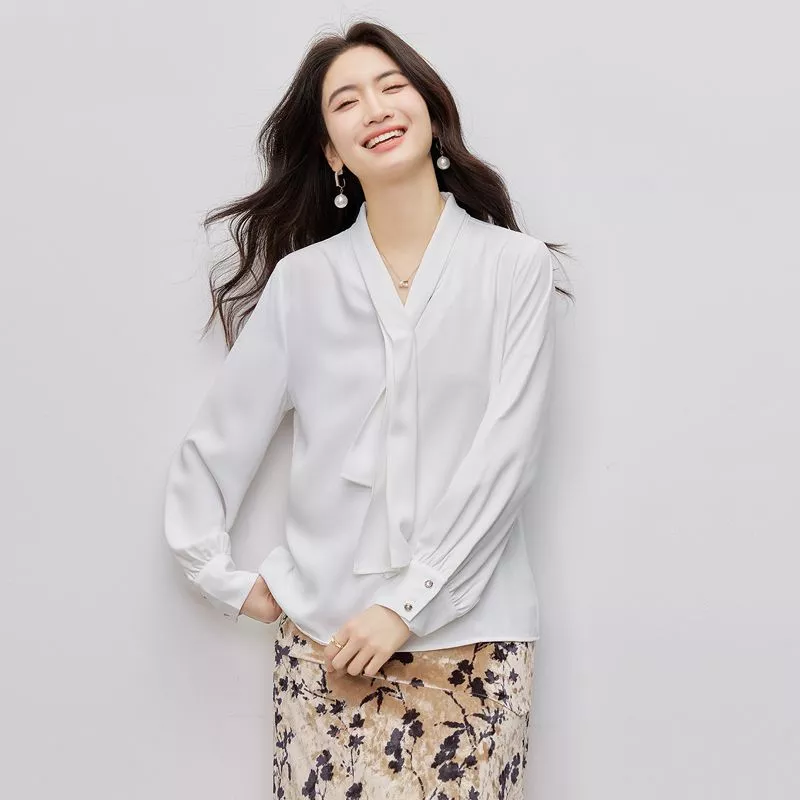 Blusa Elegante Donna Bianca Camicia Ufficio Fiocco Manica Lunga CF66263