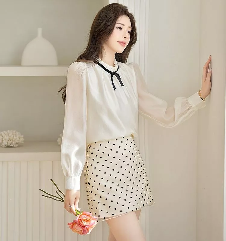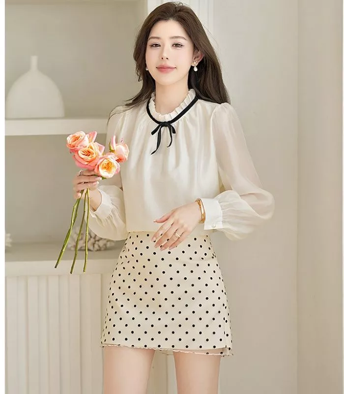 Blusa elegante e femminile con collo arricciato e fiocco decorativo perfetta per creare outfit raffinati e professionali. La linea fluida valorizza la silhouette con discreta eleganza rendendo il capo ideale per ufficio, riunioni ed eventi. Perfetta con gonne midi e pantaloni sartoriali per look chic e moderni.