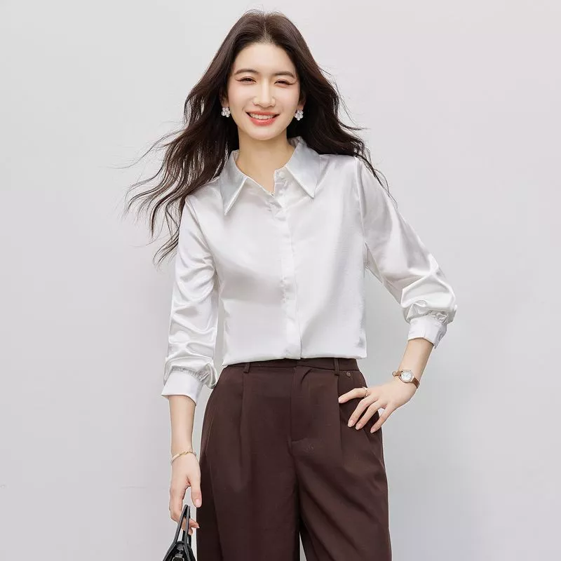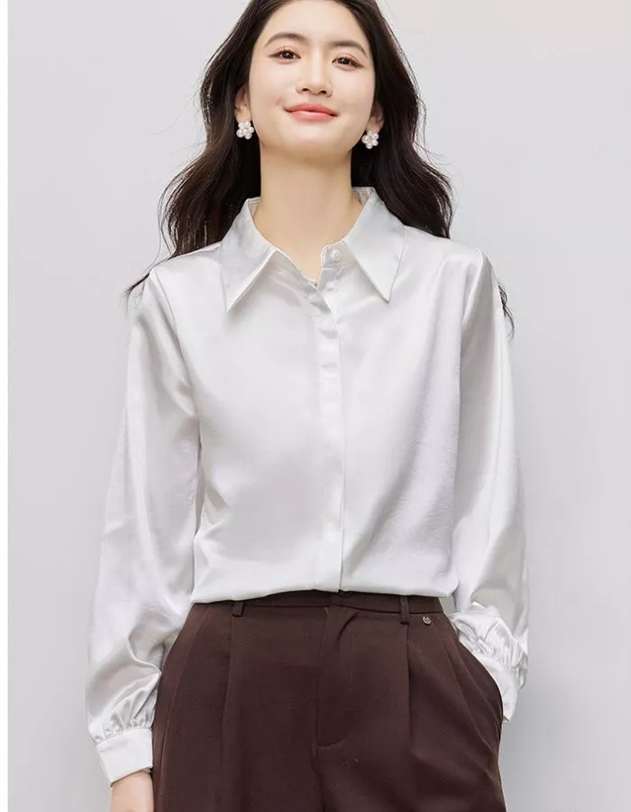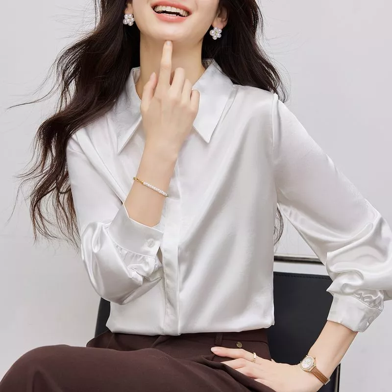 Blusa Elegante Donna Satinata Camicia Ufficio Bianca Chic CF66261