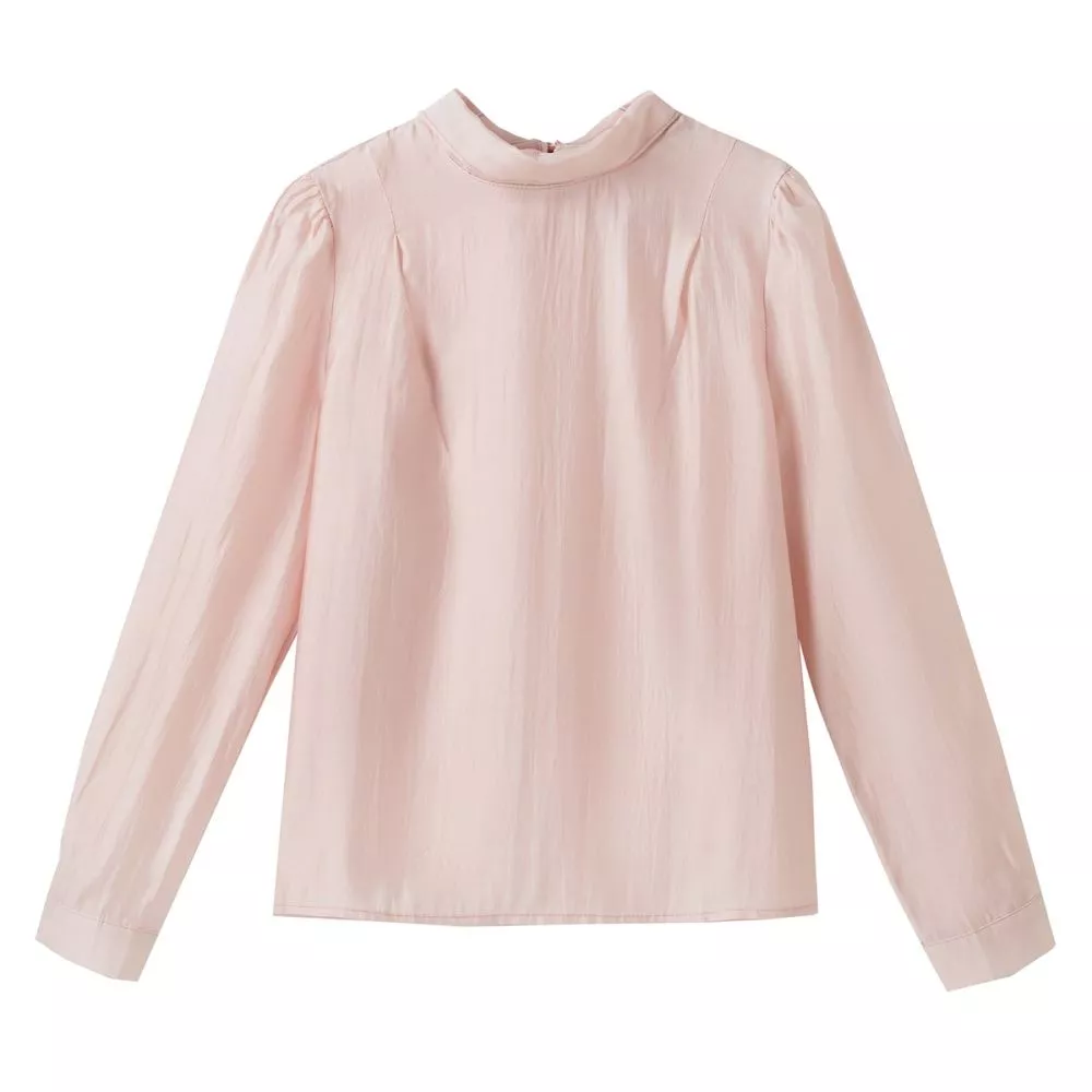 Blusa Elegante Ricami Floreali Collo Arricciato Ufficio Rosa Cipria CF67254