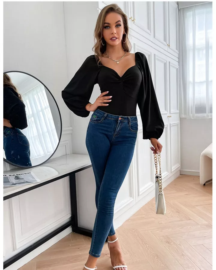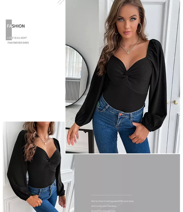 Body sottogiacca maglia camicia donna scollato maniche nero slim elegante D216