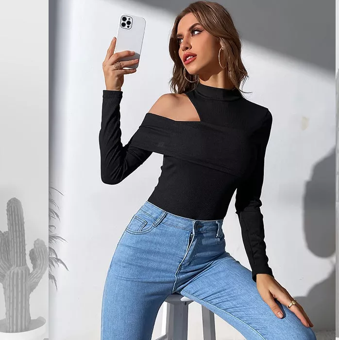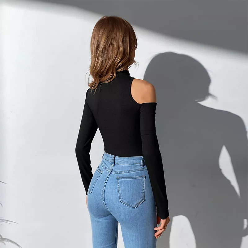Body sottogiacca maglia donna scollato nero scollato slim elegante D211