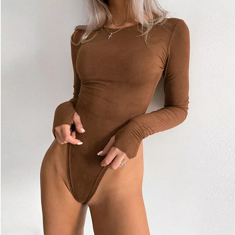 Body sottogiacca maglia maniche lunghe marrone morbido aderente girocollo 4611
