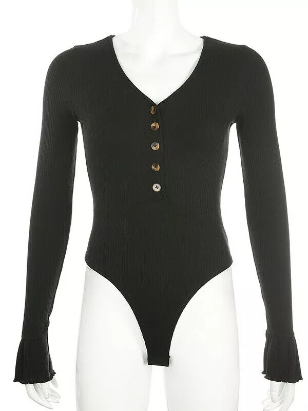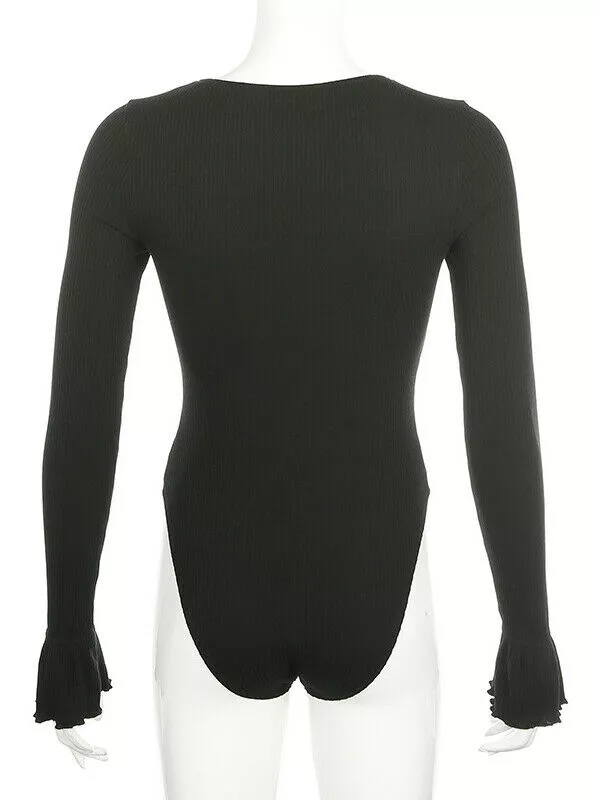 Body sottogiacca maglia maniche lunghe morbido nero scollato coste 4622