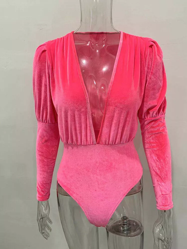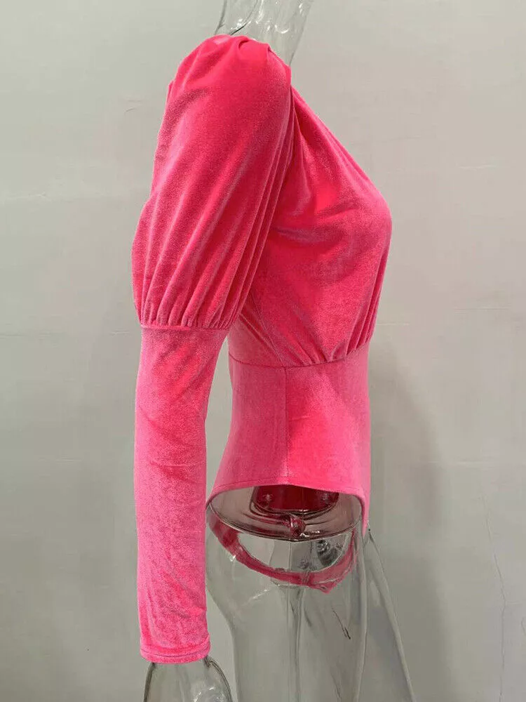 Body sottogiacca maglia maniche lunghe morbido rosa 2 scollato velluto 4630