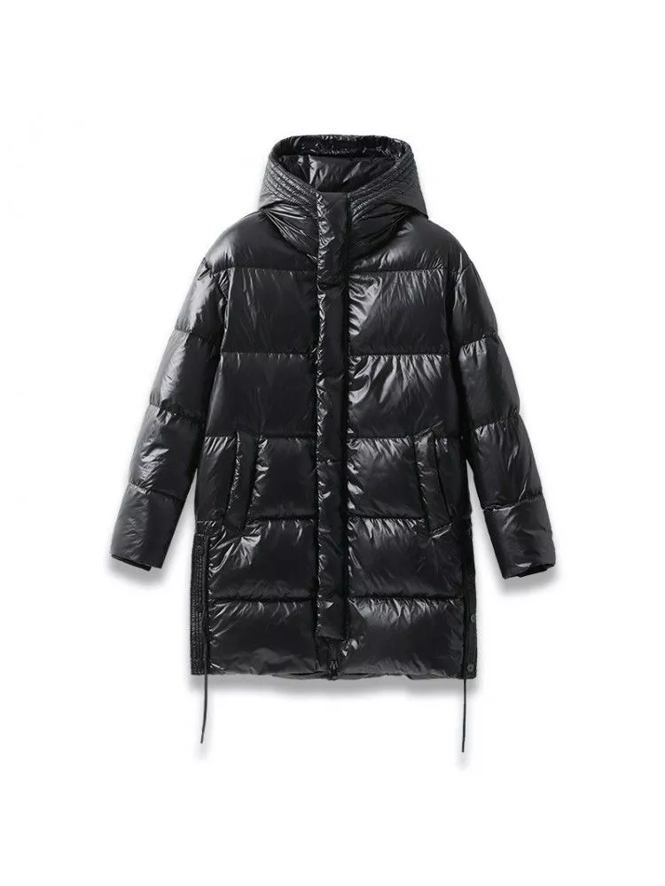 Bomber Piumino Sintetico Moda Uomo Nero Lungo Bomber Con Cappuccio 080312