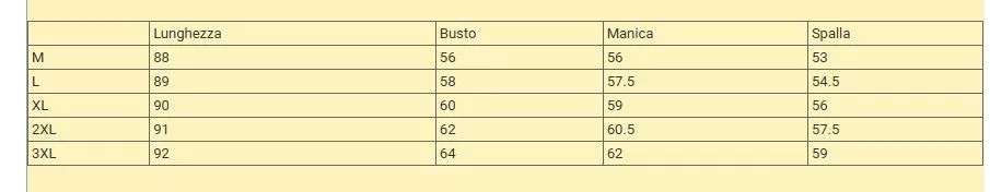 a seguire la tabella taglie