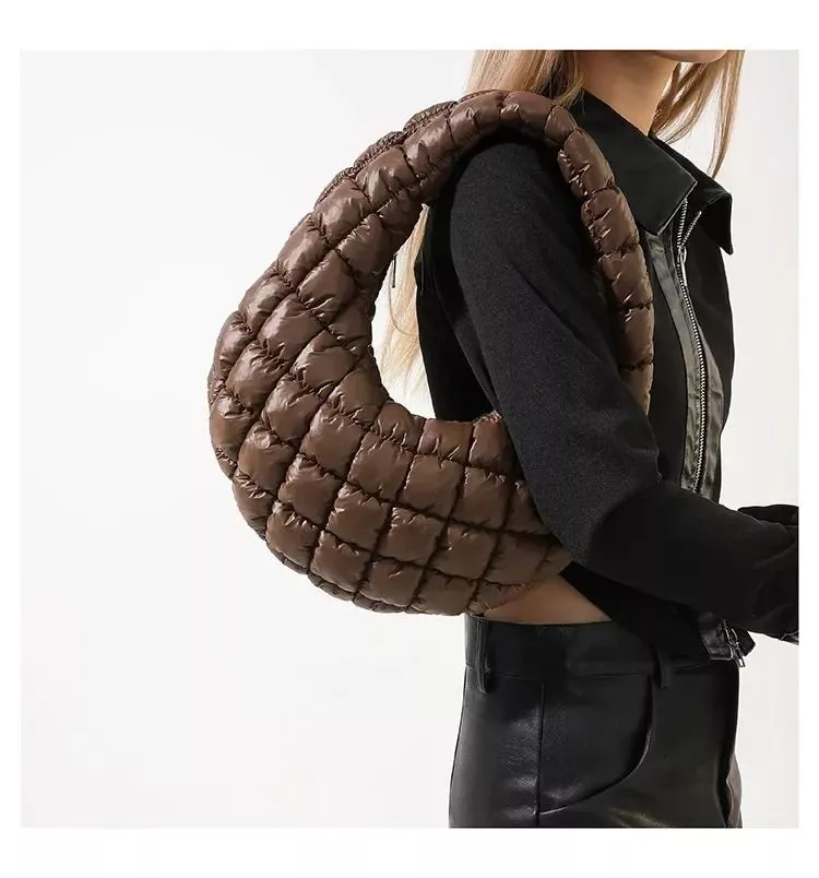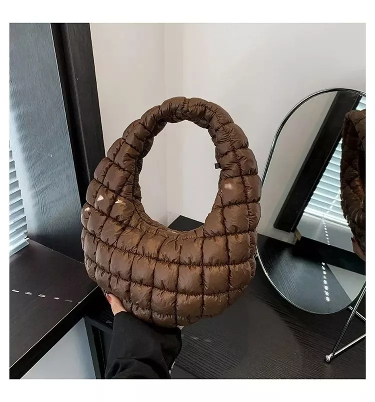 Borsa Donna Trapuntata Marrone Piuma A Mezza Luna Manico Imbottito CF82987