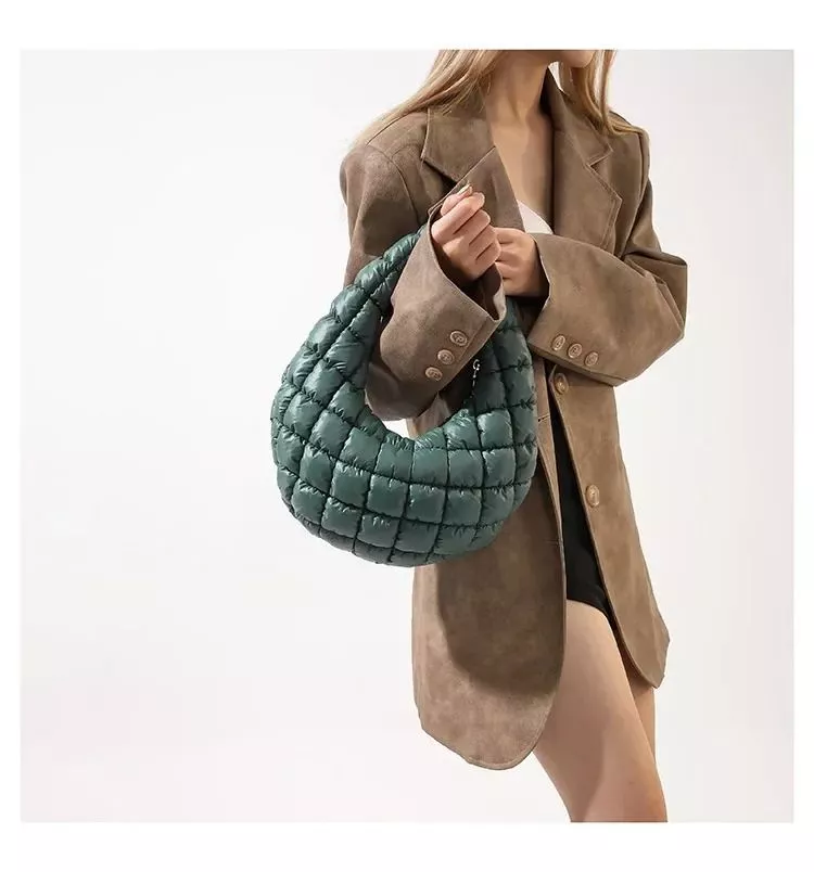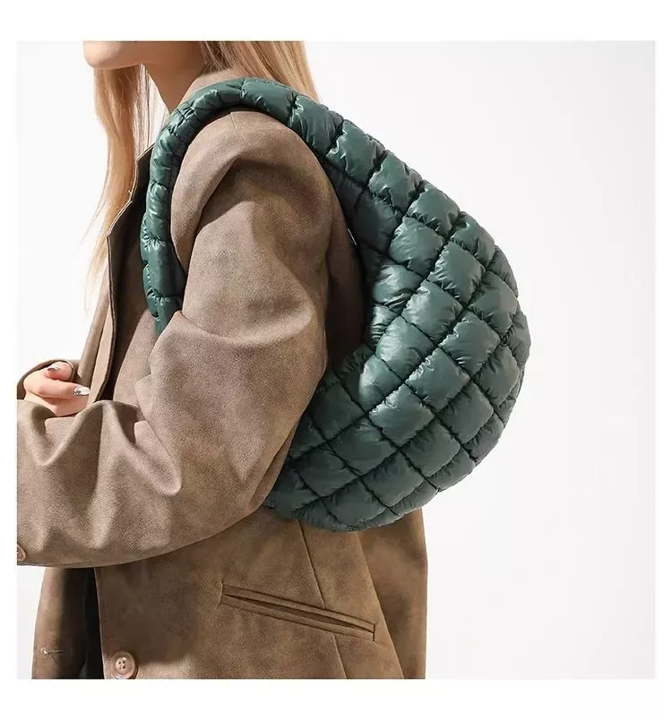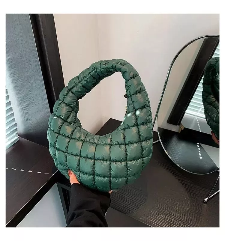 Borsa Donna Trapuntata Verde Effetto Piuma A Mezza Luna Manico Imbottito CF82987