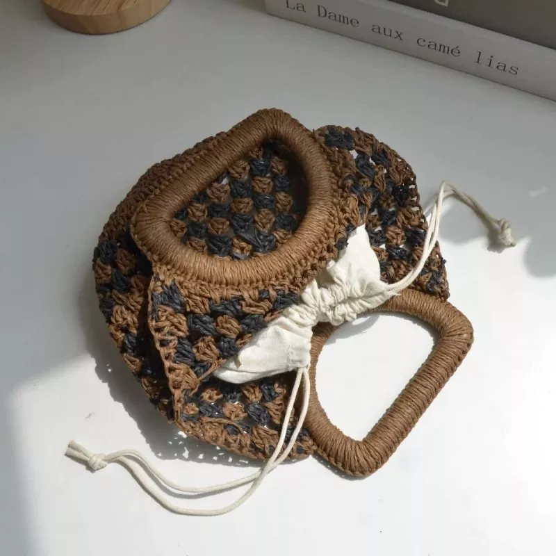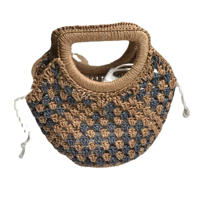 Borsa in paglia intrecciata dal design naturale arricchita da applicazioni floreali decorative che donano un tocco originale e ricercato. Il manico rigido circolare valorizza la struttura e rende la presa comoda, mentre la forma capiente la rende pratica per l’uso quotidiano. Un accessorio ideale per completare look estivi con uno stile distintivo e femminile.