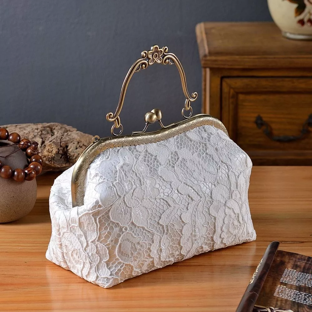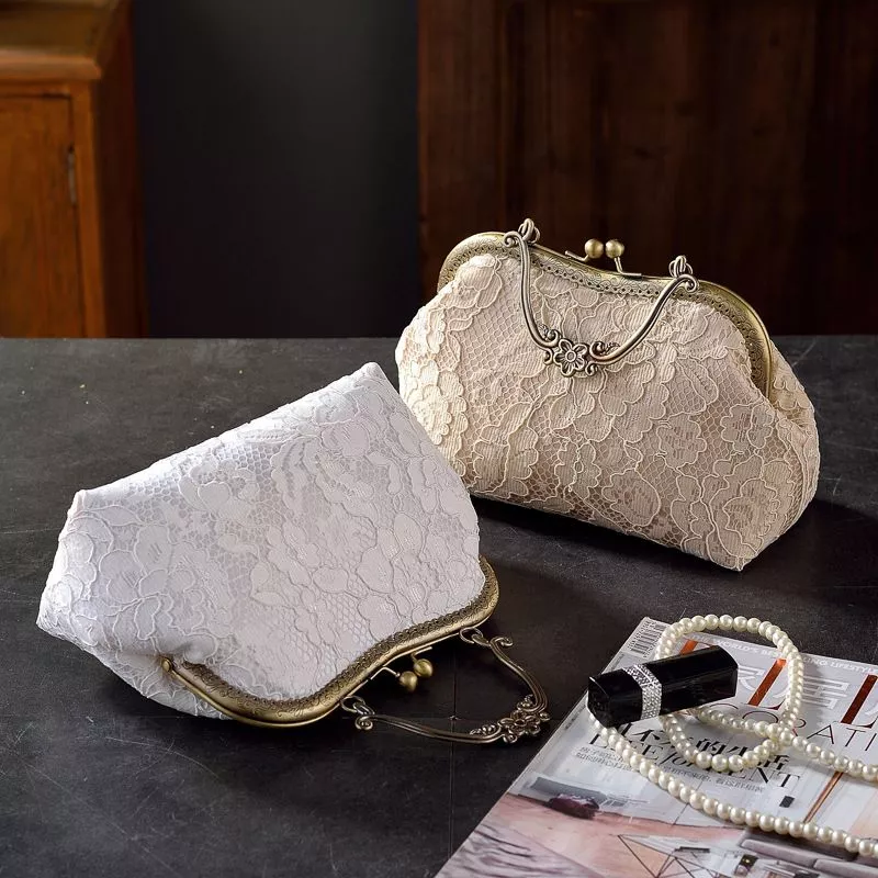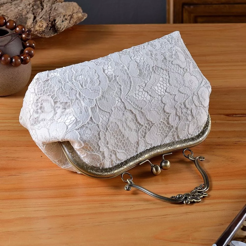 Borsa Pochette In Pizzo Con Cornice Bronzo Vintage Elegante Cerimonia CF54445