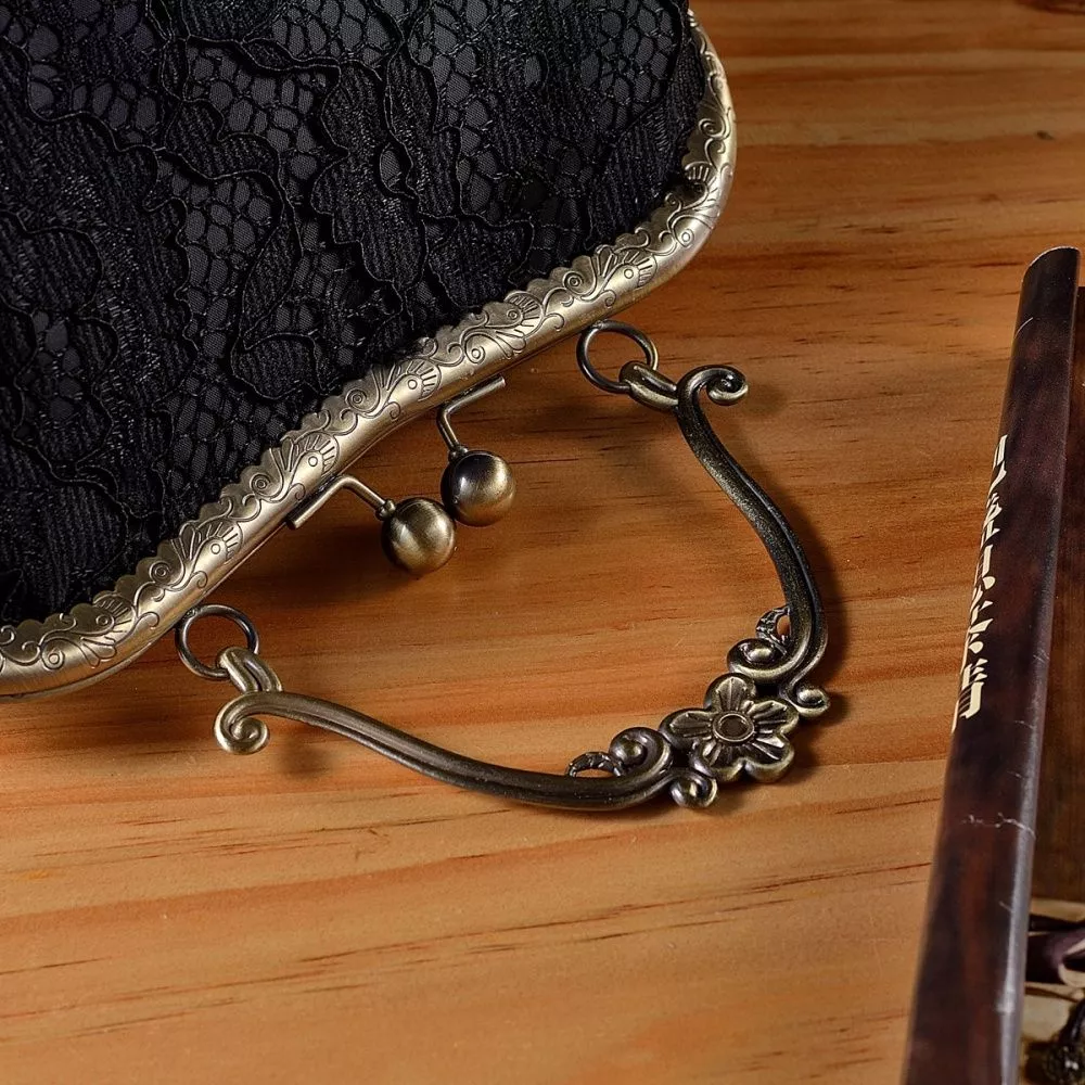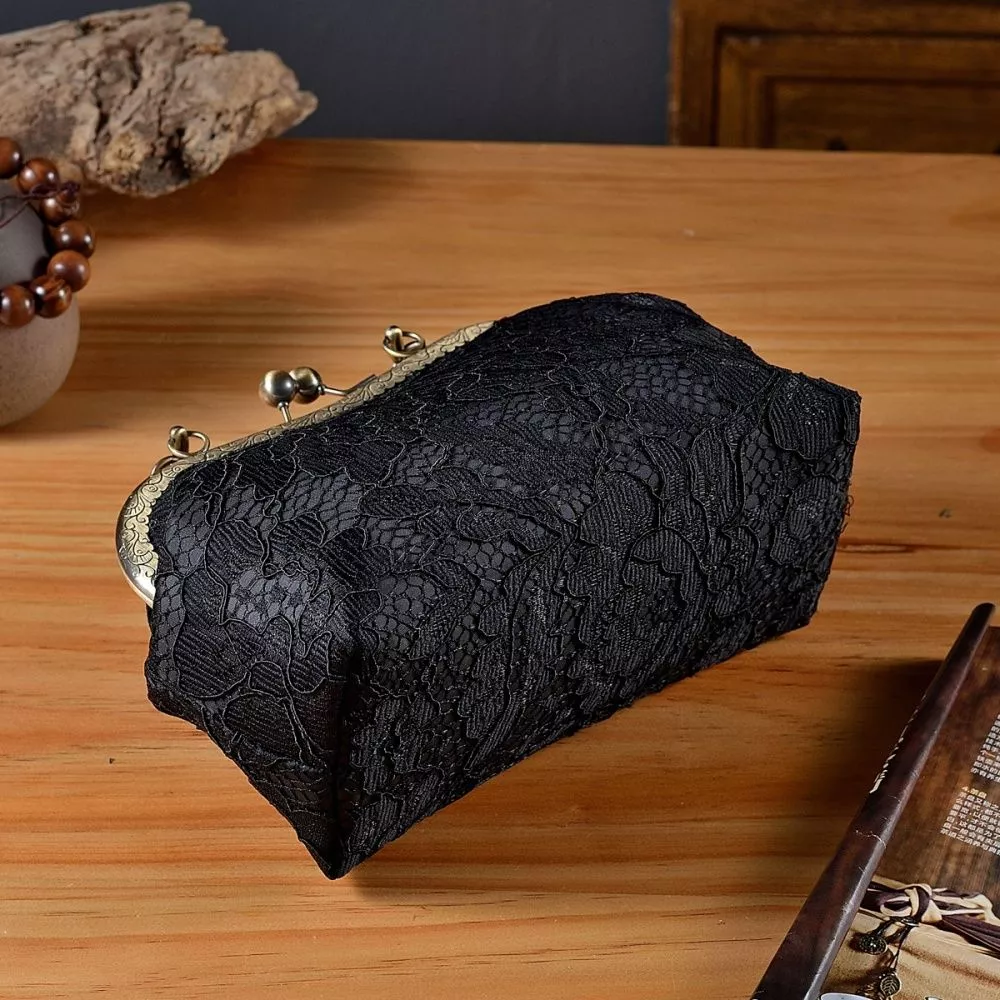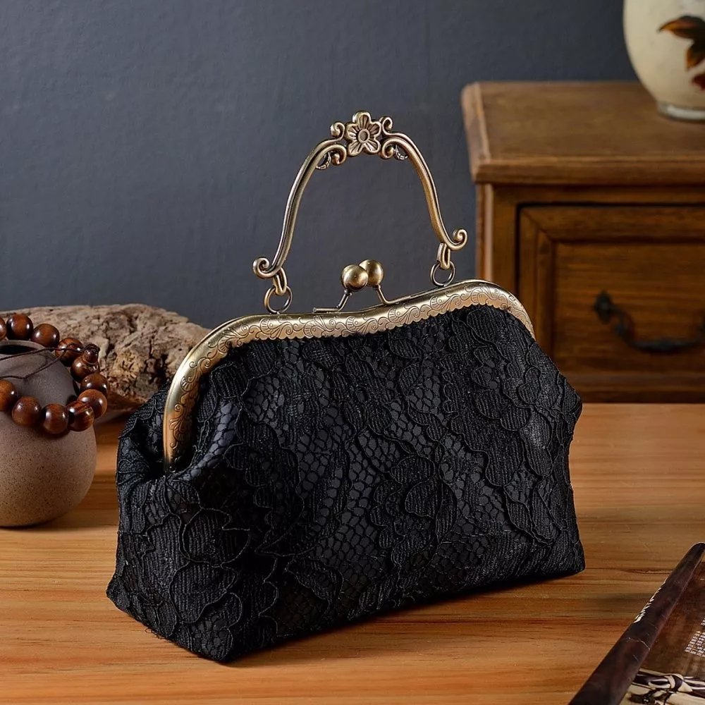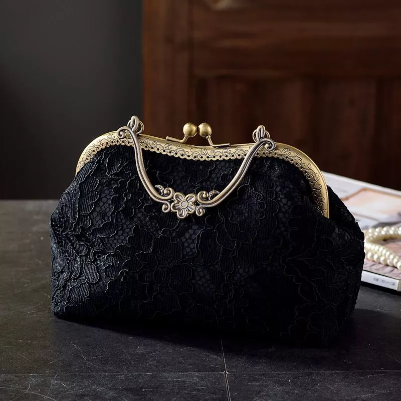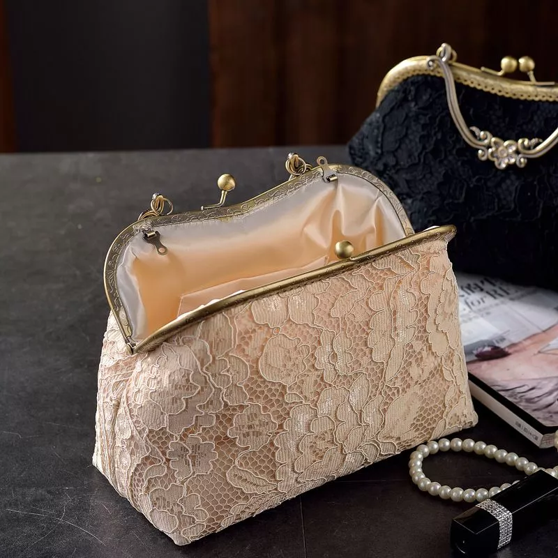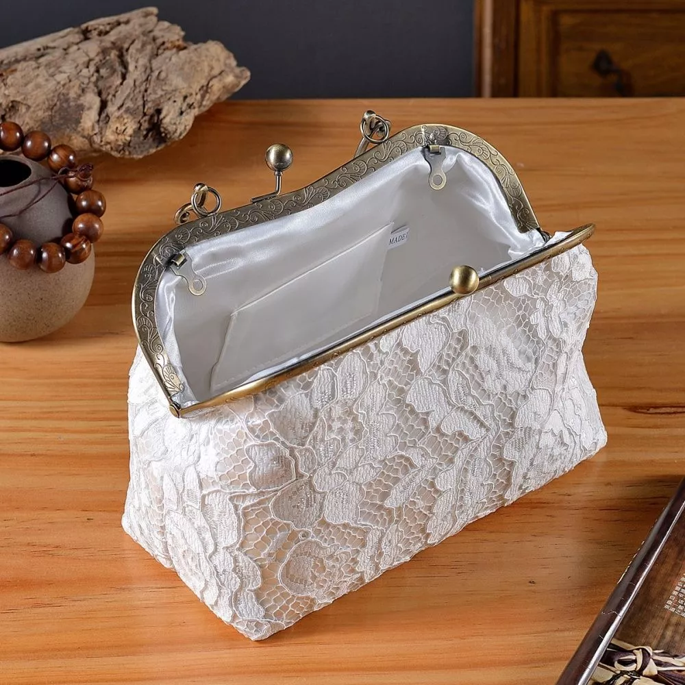 Un accessorio dal fascino senza tempo: questa borsetta in pizzo con cornice rigida in metallo bronzo inciso è perfetta per completare look eleganti e raffinati. Grazie alla catena removibile può essere portata sia a mano che a tracolla, adattandosi a cerimonie, matrimoni o serate speciali. Un dettaglio che unisce romanticismo e stile vintage, ideale per chi cerca una pochette ricercata e originale.
