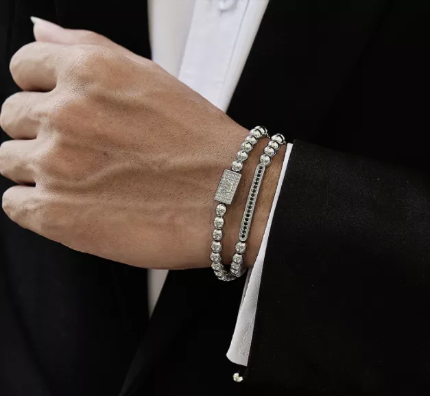 Bracciale Uomo Acciaio Braccialetto Moda doppio giro pietre color argento nero