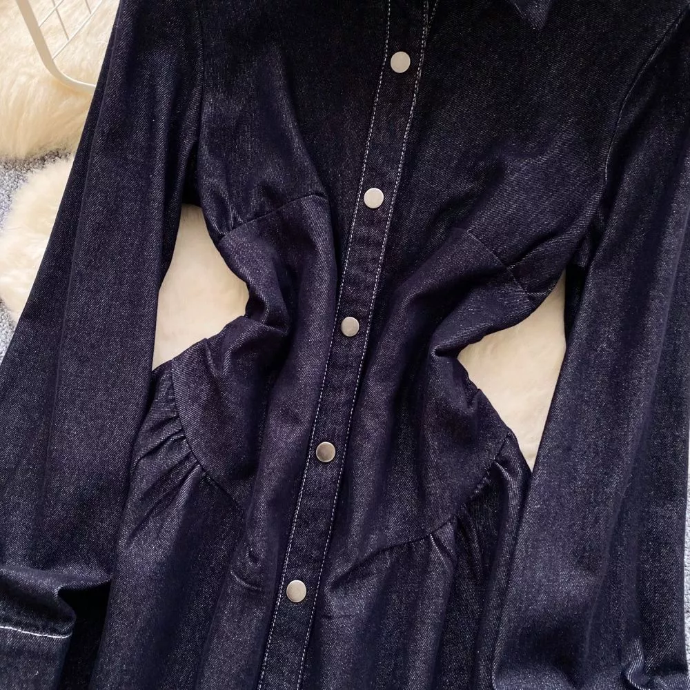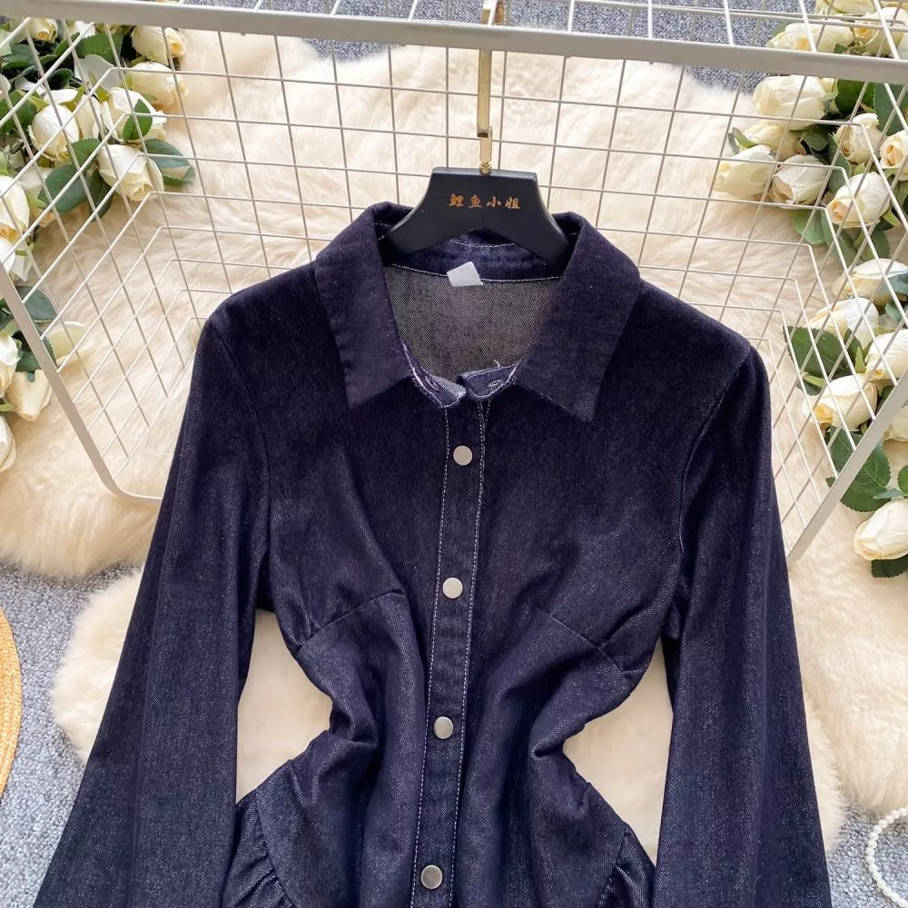Camicia abito donna in jeans denim dal design femminile e strutturato, pensata per valorizzare il punto vita grazie alla sagomatura laterale che crea un effetto modellante naturale. Il taglio richiama l’estetica camicia classica reinterpretata in chiave contemporanea, con una linea che accompagna la figura senza risultare rigida.