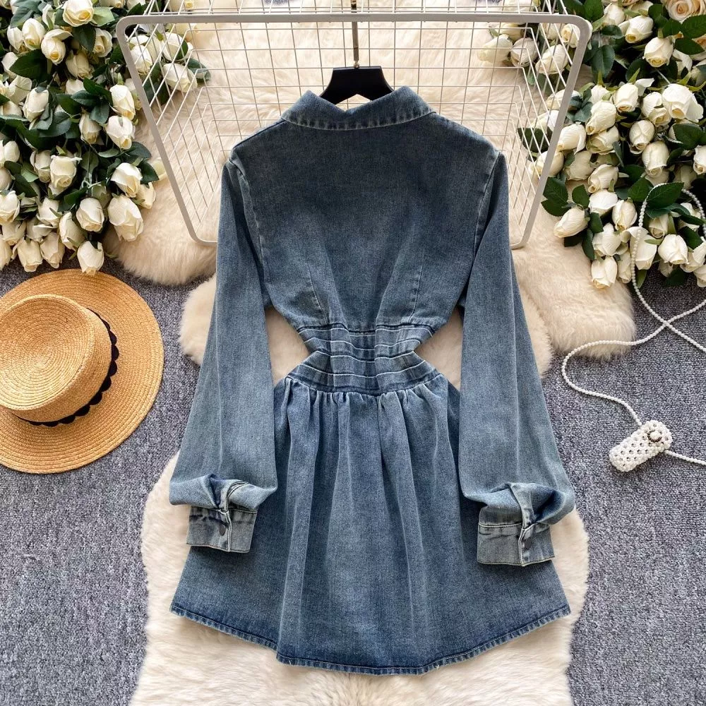 Camicia Abito Jeans Denim Donna Con Vita Sagomata E Taglio Svasato CF64952