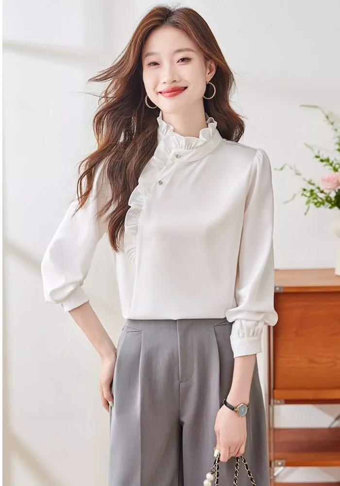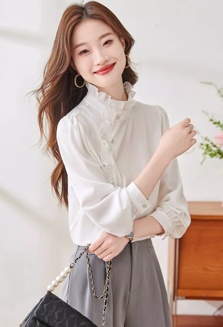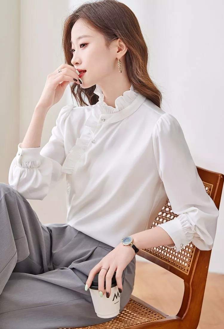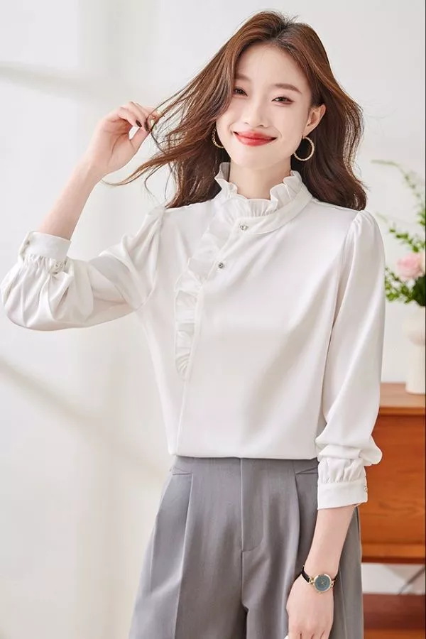 🔹 Dettagli Tecnici 👚 Tipo: camicia elegante con volant