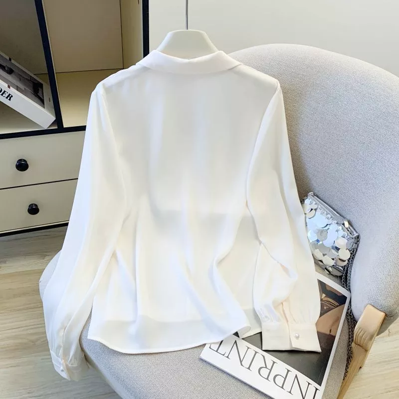 Camicia Donna Bianca Con Rouches Elegante Ufficio Chic Moda CF66530