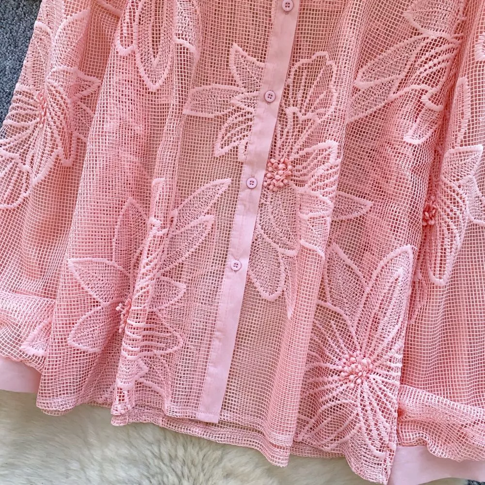 Camicia Donna Rete Ricamata Floreale Rosa Elegante Trasparenze Delicate CF65463
