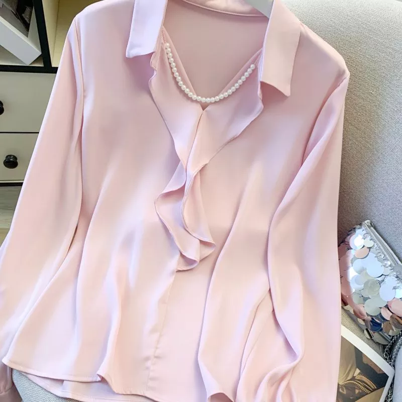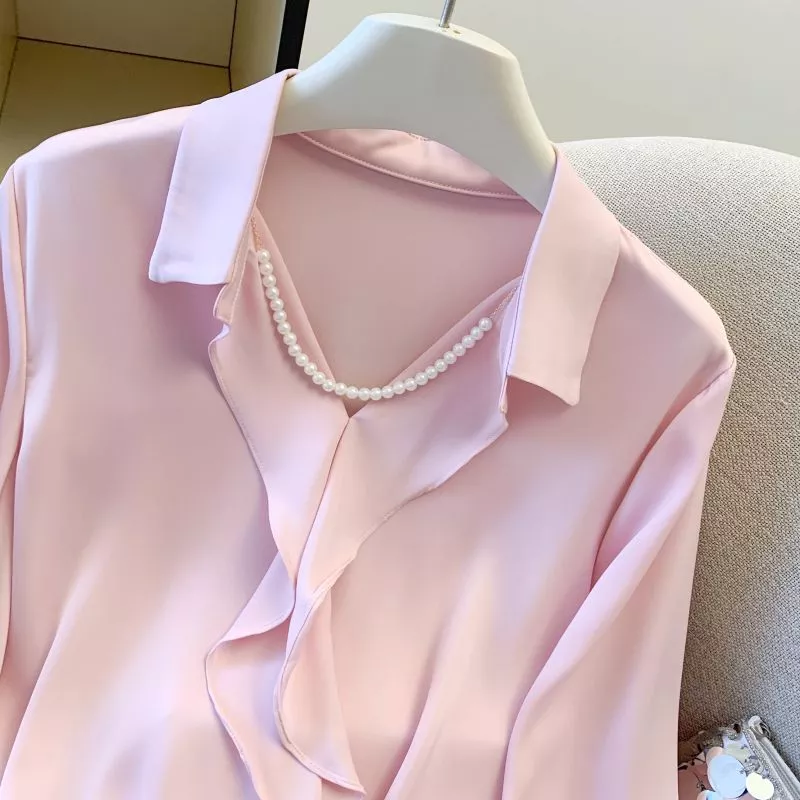 Camicia Donna Rosa Con Rouches Elegante Ufficio Chic Moda CF66530